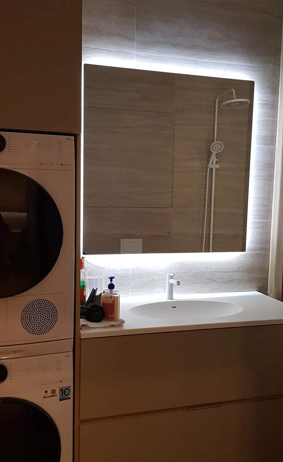 - Функция антизапотевания (30×40 см) защищает зеркало от конденсата, а инфракрасный датчик обеспечивает удобное бесконтактное управление.