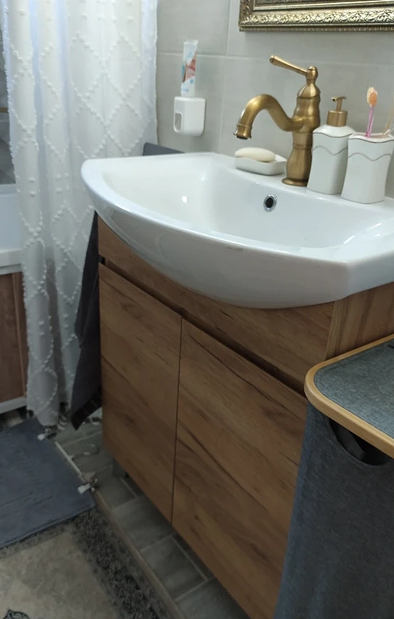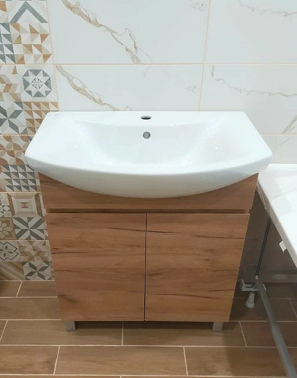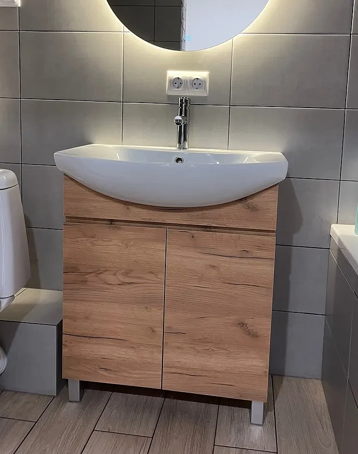 - Ширина 66 см делает модель удобной для помещений среднего и большого размера, обеспечивая комфортную зону умывания и достаточное пространство для хранения.