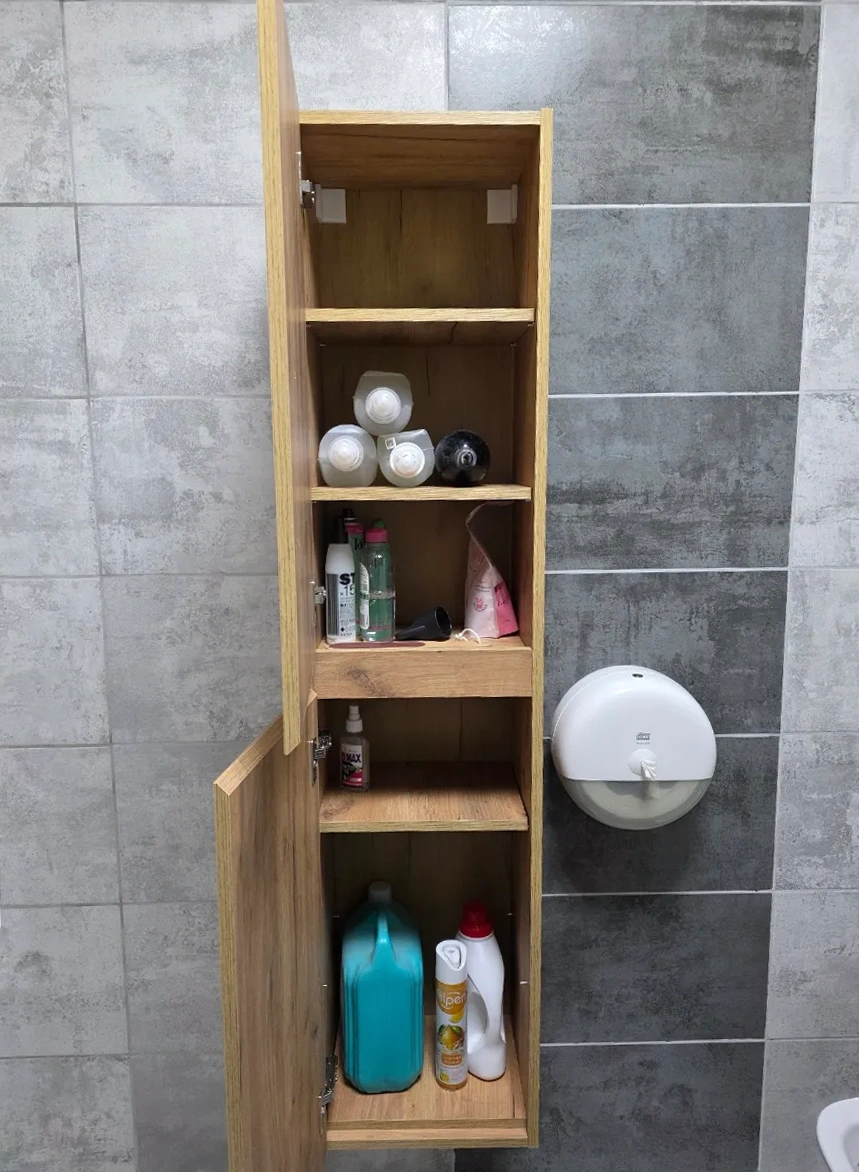 Если вы хотите купить навесной шкаф для ванной комнаты, который объединяет эстетику, практичность и надёжность, модель Модуль 350 в цвете дуб золотой станет отличным выбором. Этот подвесной шкафчик для ванной прекрасно впишется в интерьеры в стиле лофт, сканди или классика.
