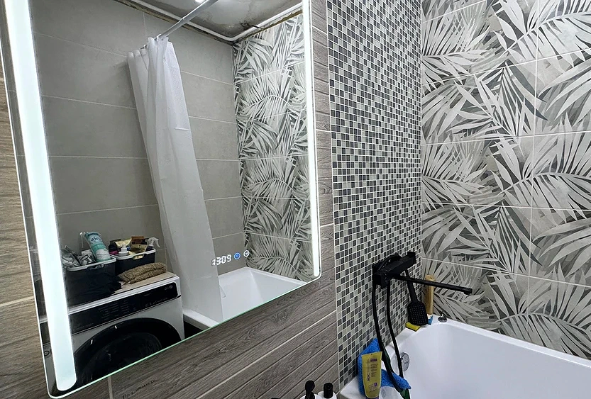- Умные функции — часы, датчик температуры и антизапотеватель (30×40 см) — делают использование максимально комфортным.