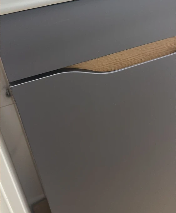 - Интегрированная ручка делает внешний вид максимально лаконичным и удобным в использовании. Внутри — выдвижной ящик, который отлично подходит для хранения мелких аксессуаров, уходовой косметики или бытовой химии. Конструкция надёжная и плавная в эксплуатации, даже без доводчика.