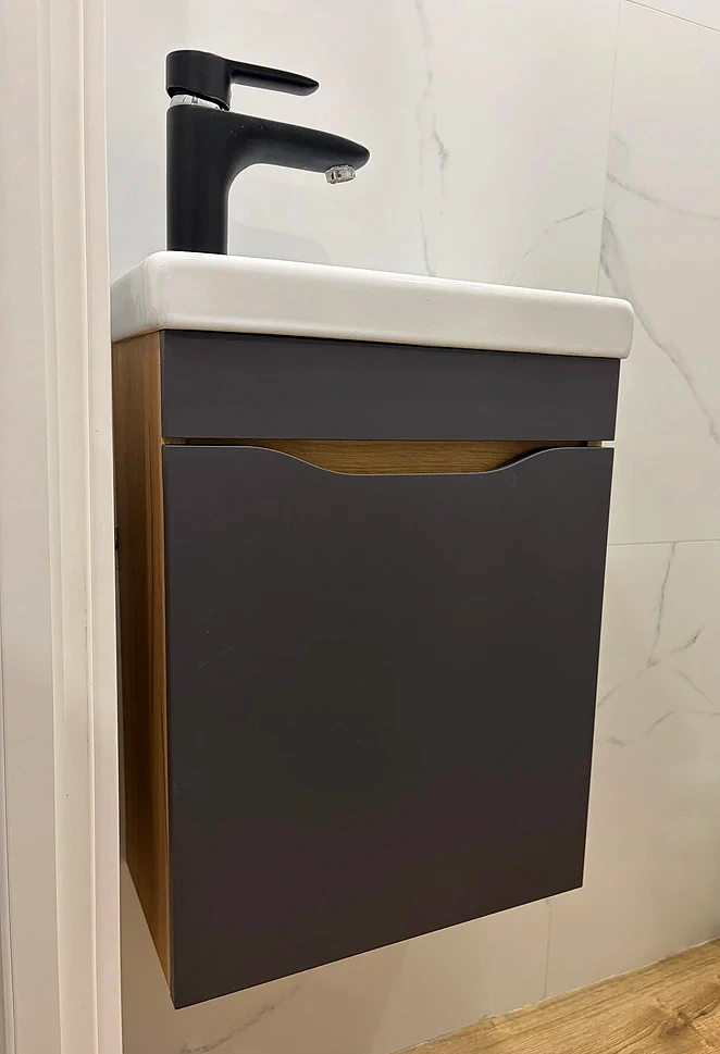 Тумба под раковину навесная OLEVARO Селин 400-1-0 графит, корпус дуб золотой