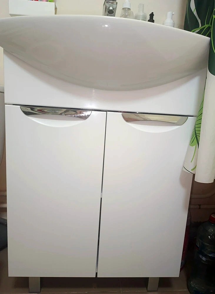- За двумя распашными дверцами скрывается удобное отделение для хранения бытовой химии, средств ухода, текстиля или необходимых аксессуаров.