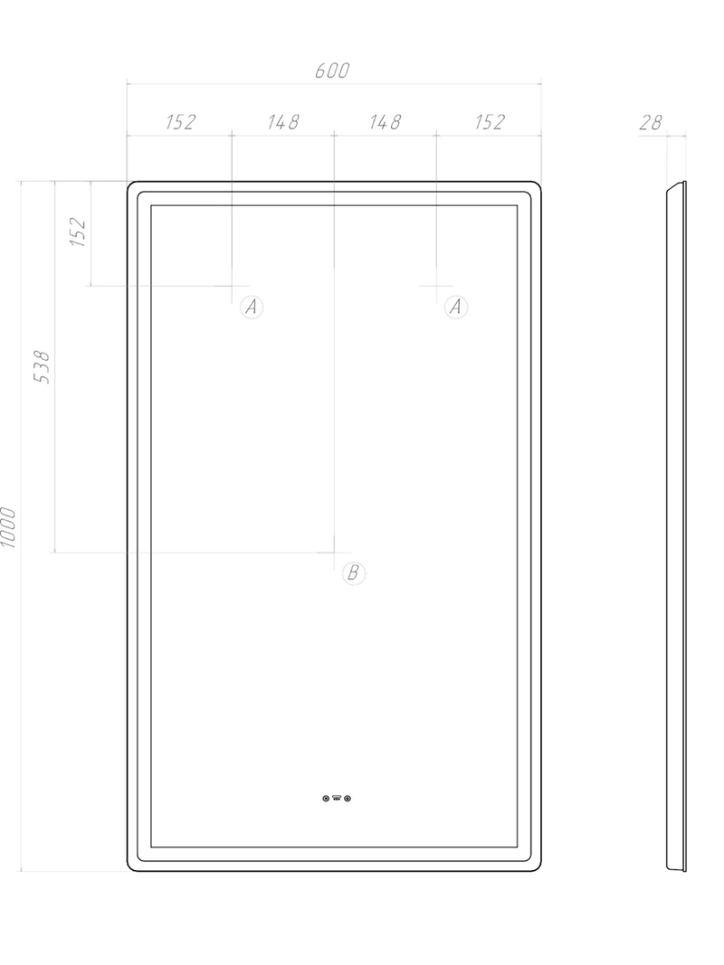 - Опции зеркаладатчик присутствия, сенсорное управление, светодиодная подсветка, диммер, функция антизапотевания