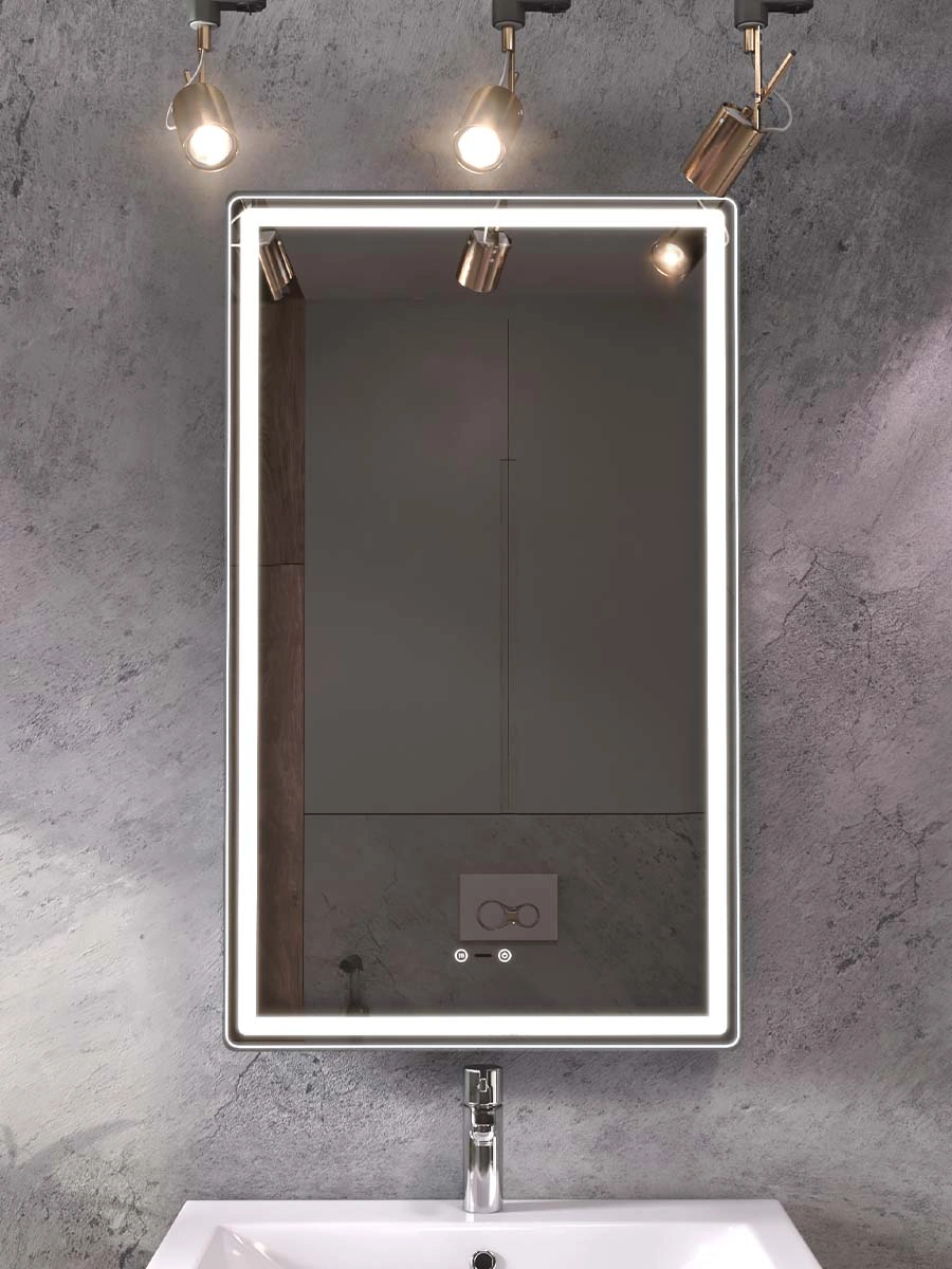 Зеркало для ванной OLEVARO Эллио Степ 600 со светодиодной подсветкой, прямоугольное