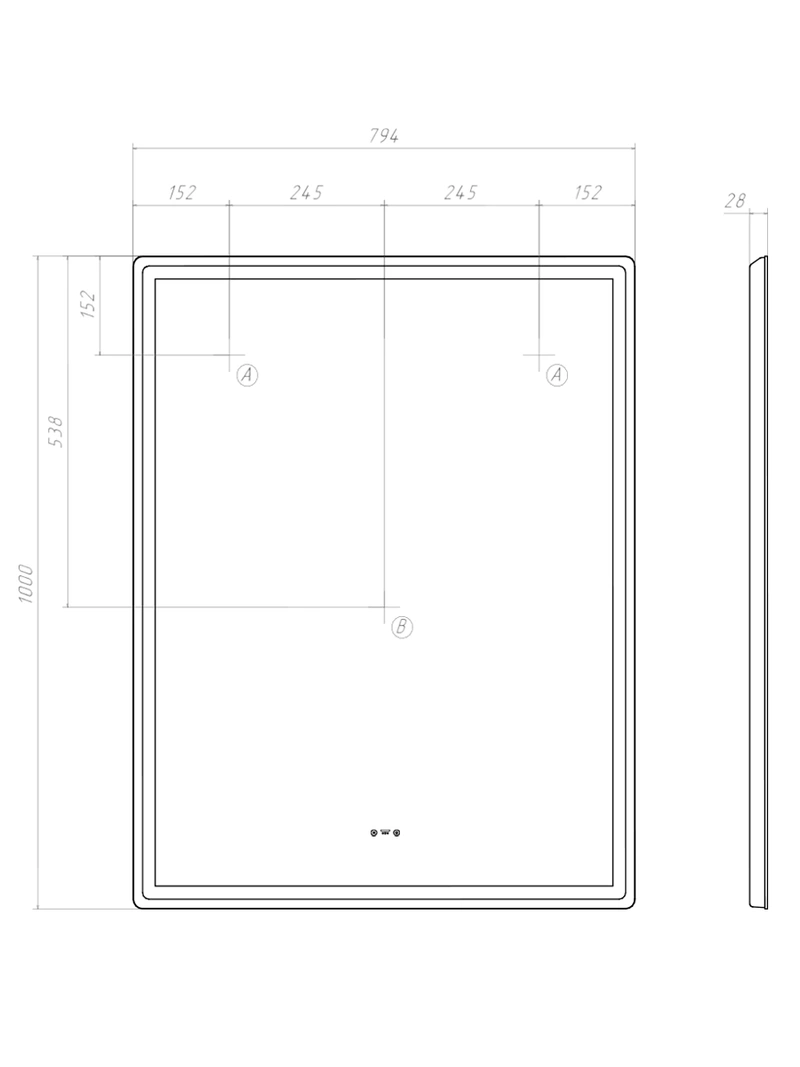 - Опции зеркаладатчик присутствия, сенсорное управление, светодиодная подсветка, диммер, функция антизапотевания
