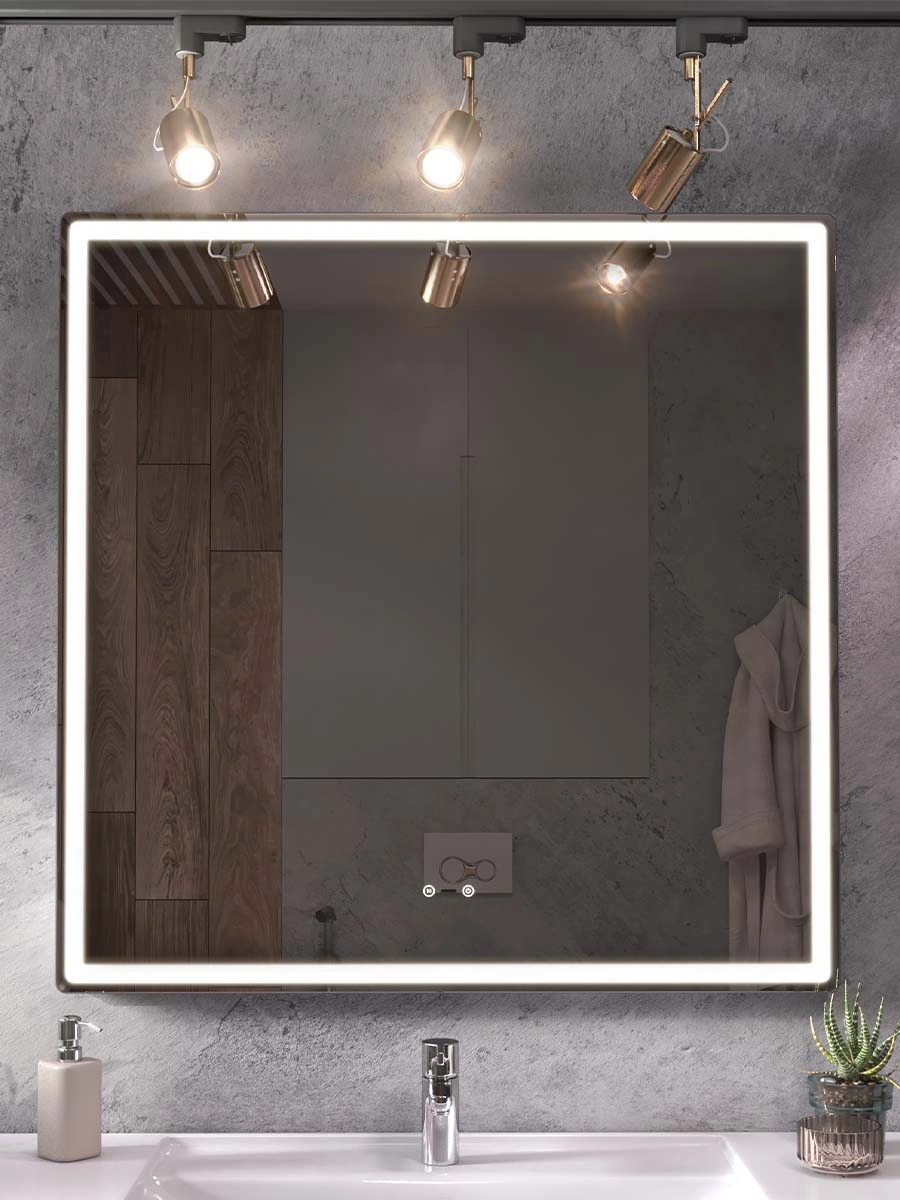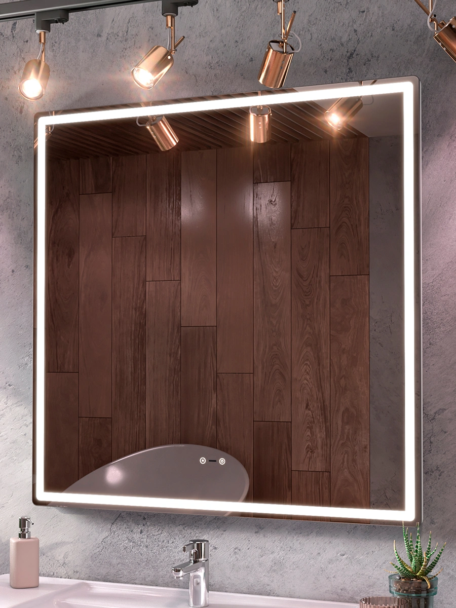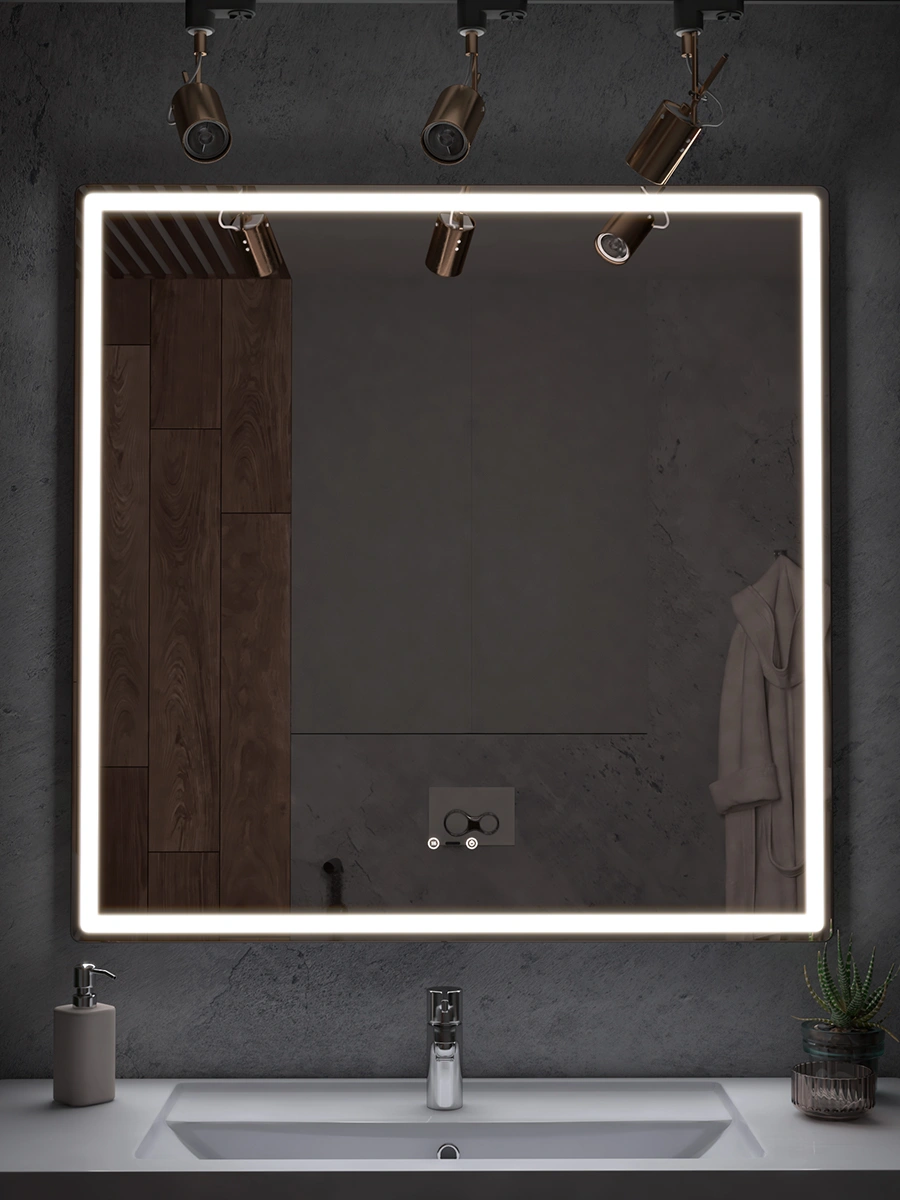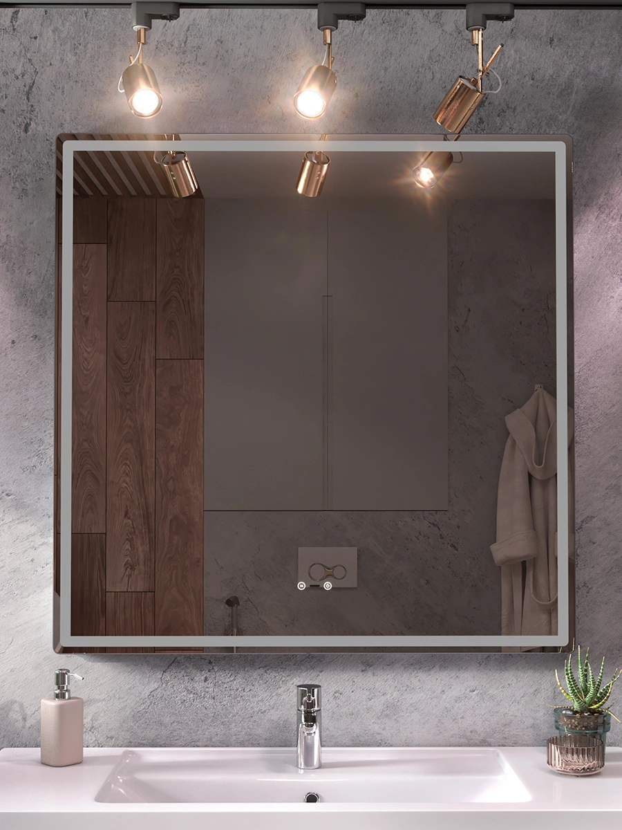 Зеркало для ванной OLEVARO Эллио Степ 1000 со светодиодной подсветкой, квадратное