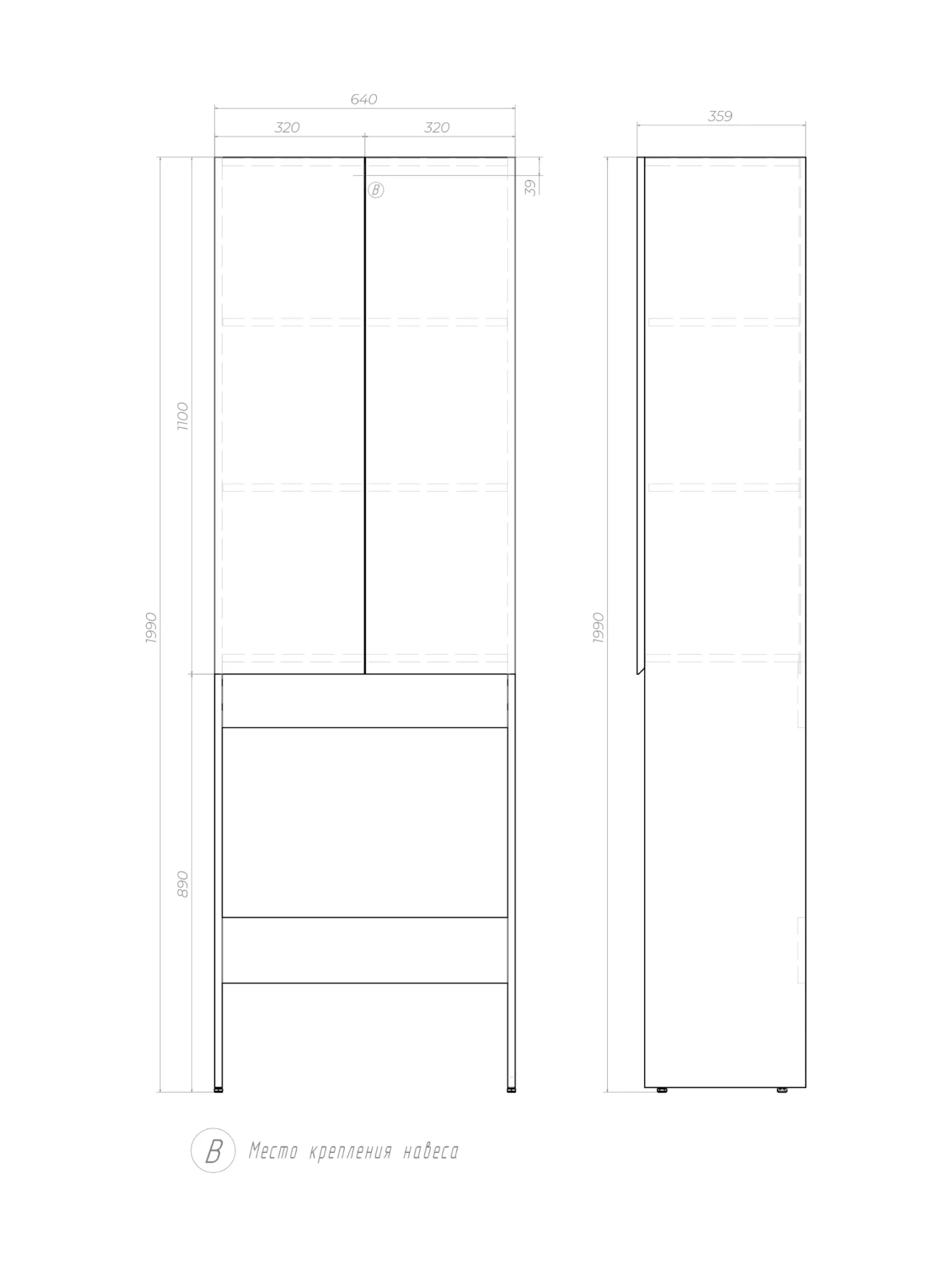 - НазваниеШкаф комбинированный Modul 640 под стиральную машину белый