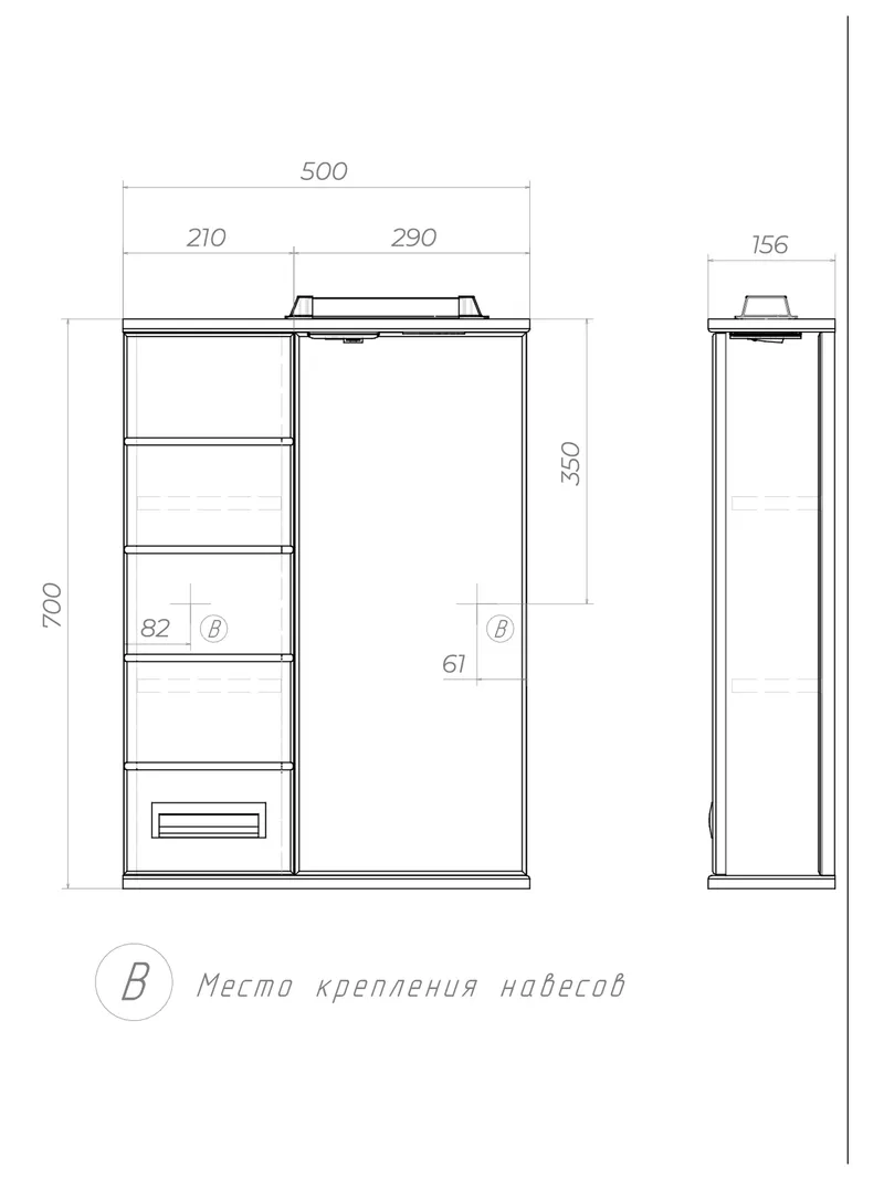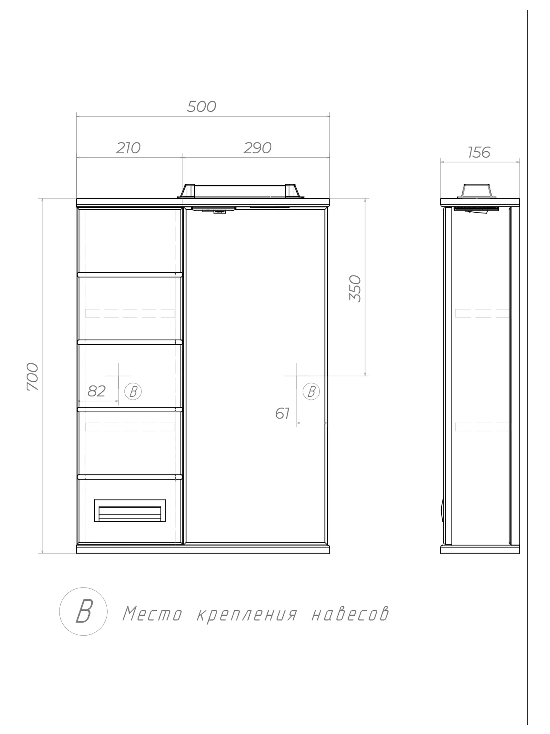 Шкаф навесной с зеркалом Bianca 500 (левый) со спотом