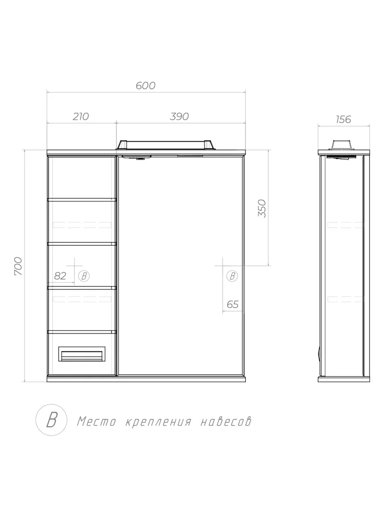 Шкаф навесной с зеркалом Bianca 600 (левый) со спотом