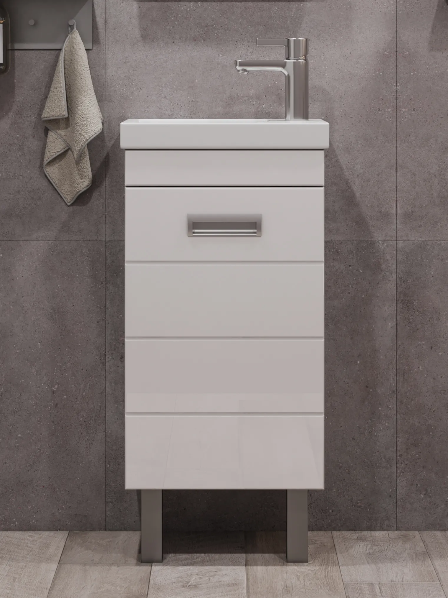Тумба под раковину Bianca 400-1-0 — идеальный выбор для небольшой ванной комнаты. Эта напольная тумба для ванной сочетает лаконичный дизайн, надёжность и продуманную функциональность. Белый цвет корпуса и фасадов делает интерьер светлее и визуально просторнее, а глянцевое покрытие фасадов из ЛМДФ придаёт мебели современный вид. Корпус выполнен из влагостойкой ЛДСП, устойчива к пару и перепадам температуры, а торцы защищены ПВХ-кромкой, что продлевает срок службы изделия.