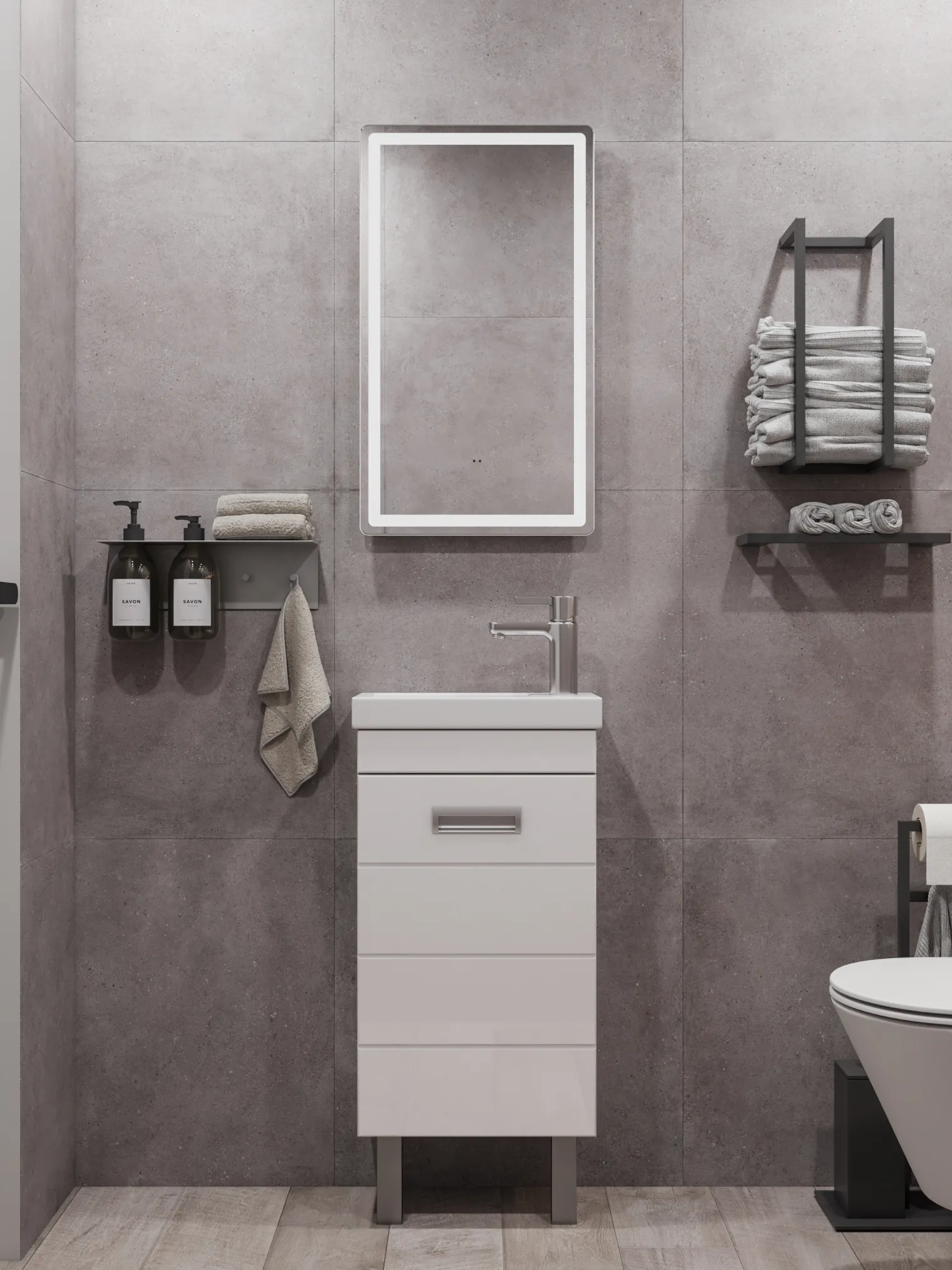 - ОписаниеТумба под раковину Bianca 400-1-0 — идеальный выбор для небольшой ванной комнаты. Эта напольная тумба для ванной сочетает лаконичный дизайн, надёжность и продуманную функциональность. Белый цвет корпуса и фасадов делает интерьер светлее и визуально просторнее, а глянцевое покрытие фасадов из ЛМДФ придаёт мебели современный вид. Корпус выполнен из влагостойкой ЛДСП, устойчива к пару и перепадам температуры, а торцы защищены ПВХ-кромкой, что продлевает срок службы изделия. Петли с доводчиками обеспечивают плавное и бесшумное закрывание дверей. Внутри тумбы — удобное отделение для хранения бытовой химии, полотенец и других принадлежностей. Модель Bianca 400-1-0 продается без раковины и идеально сочетается с моделью раковины Como 40. Для подбора другой раковины следует учитывать точные размеры тумбы, указанные в технической схеме на странице товара — это позволит выбрать совместимую модель по ширине и глубине. OLEVARO — российский производитель мебели для ванных комнат, создающий современную и надёжную мебель из влагостойких материалов. Продукция бренда разрабатывается с учётом условий эксплуатации во влажных помещениях, сочетая практичность, качество и актуальный дизайн. Если вы хотите купить напольную тумбу в ванную комнату, которая гармонично впишется в интерьер и прослужит долгие годы — выбирайте Bianca 400-1-0.