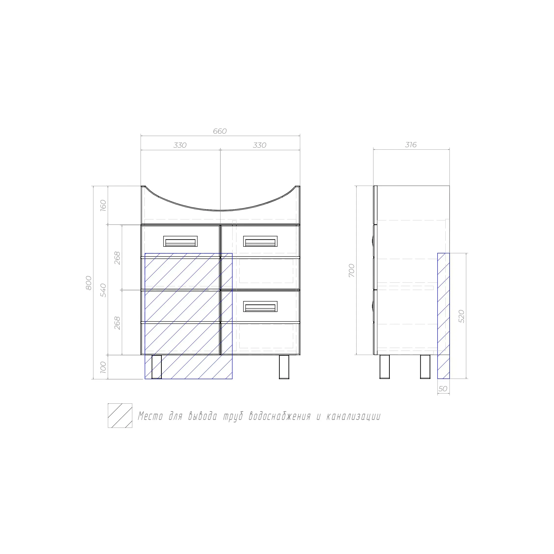 Тумба под раковину Bianca 700-1-2 (Балтика)