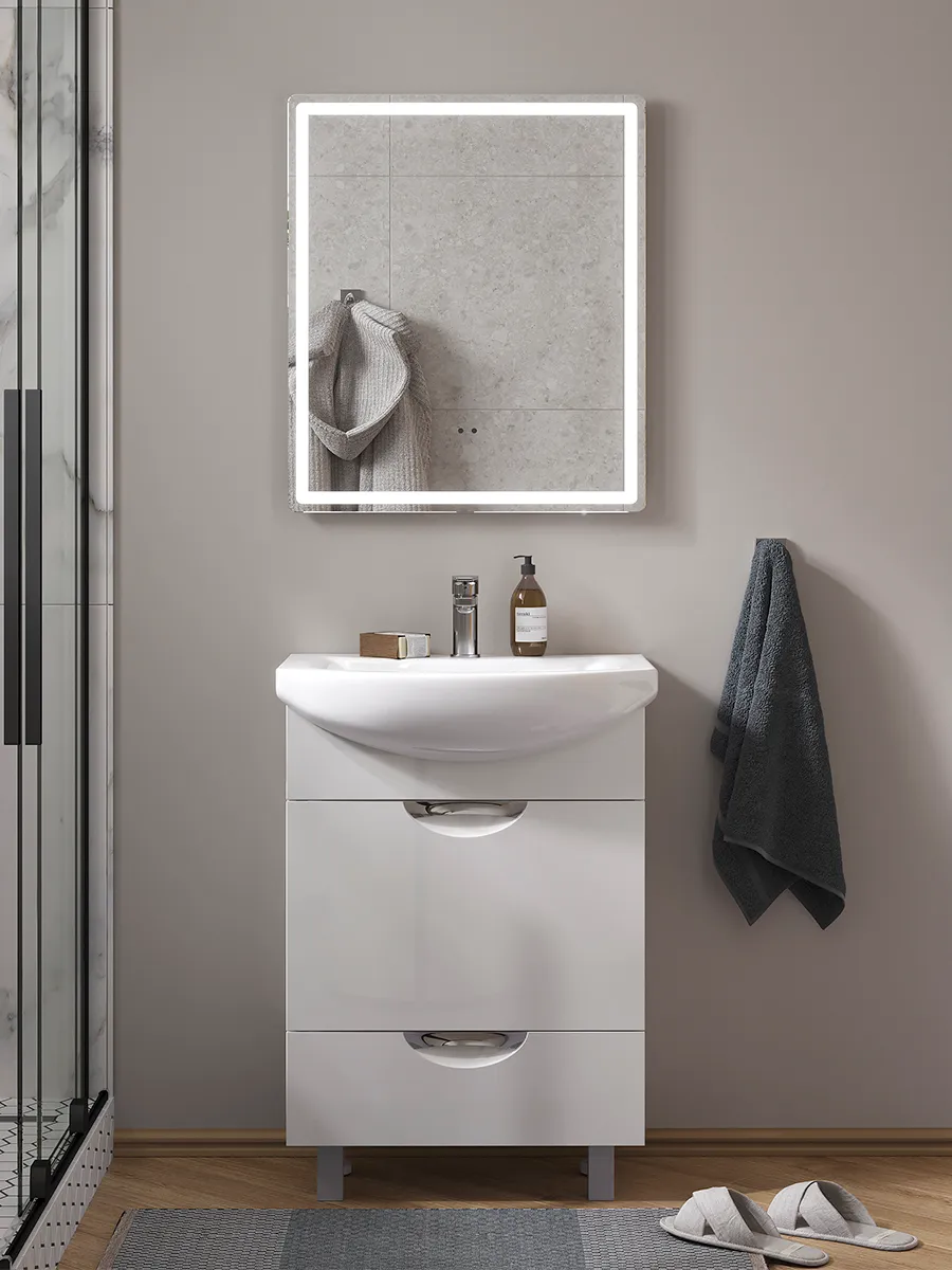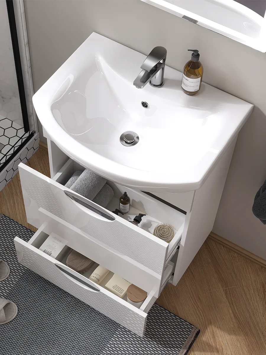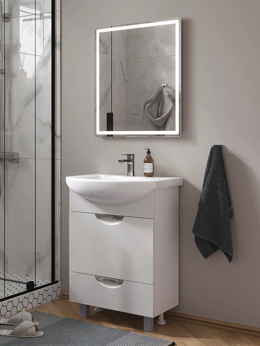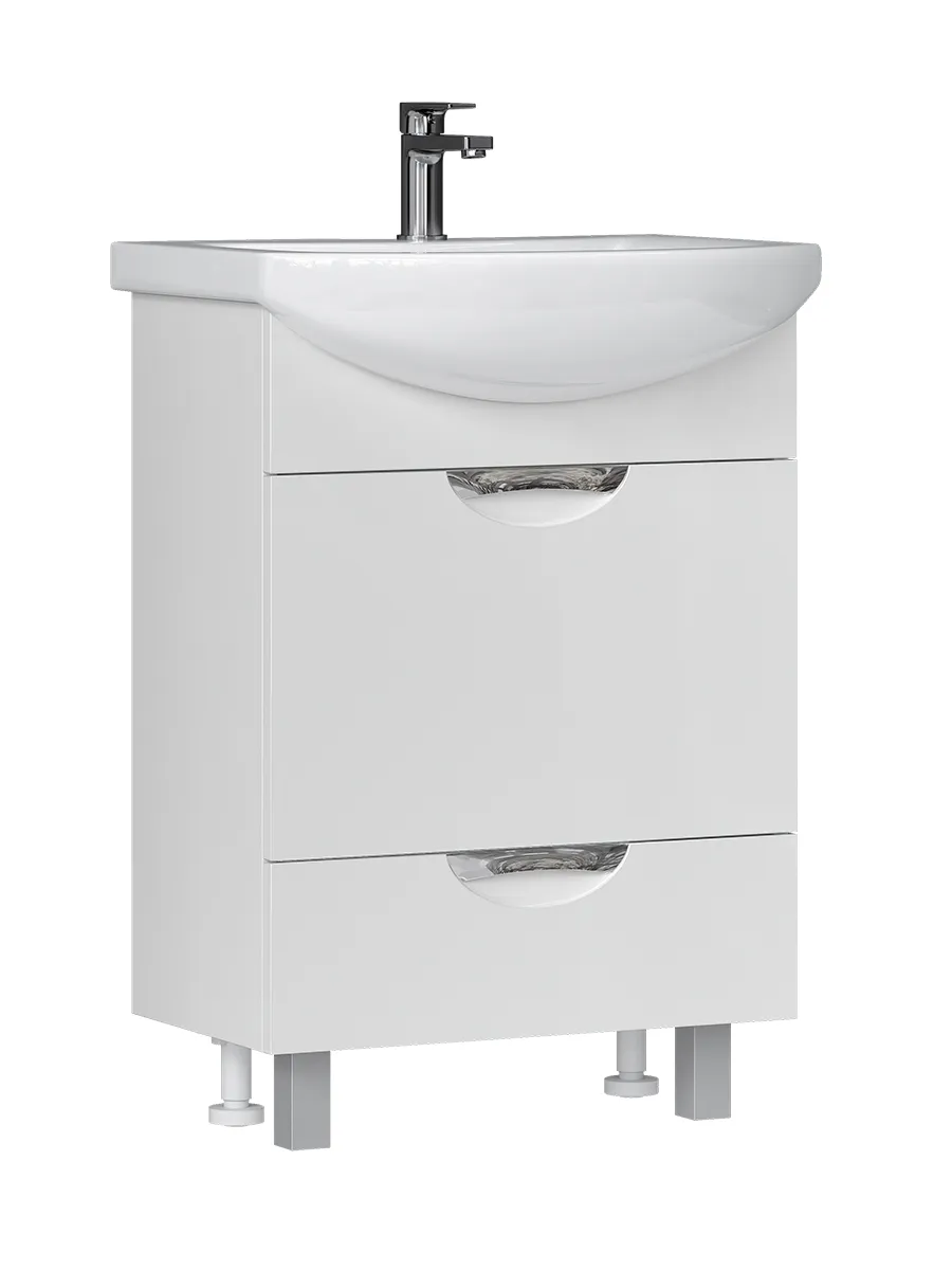 Тумба под раковину Colibri 600-0-2 — практичная и стильная модель, созданная для тех, кто ищет удобную систему хранения и современный внешний вид в ванной комнате. Компактная ширина 56 см позволяет разместить тумбу даже в небольших ванных, сохранив удобство использования и достаточное пространство под хранение. Корпус выполнен из влагостойкой ЛДСП с матовым ламинированным покрытием, устойчивым к пару и перепадам температуры. Глянцевые фасады из ЛМДФ, обработанные прочной плёнкой ПВХ, выглядят аккуратно, легко очищаются и сохраняют первоначальный вид даже при ежедневной эксплуатации. Хромированная лицевая фурнитура подчёркивает современный стиль коллекции Colibri. Тумба оснащена двумя выдвижными ящиками, которые удобно использовать для косметики, средств ухода, бытовой химии или аксессуаров. Ящики выдвигаются плавно и обеспечивают быстрый доступ к содержимому. Конструкция без доводчиков делает модель более доступной по цене, сохраняя при этом высокое качество исполнения. Модель Colibri 600-0-2 продаётся без раковины, но идеально подходит под умывальник Балтика 60. Если вы хотите подобрать раковину другого типа или бренда, ориентируйтесь на габариты тумбы и техническую схему, размещённую на странице товара. Бренд OLEVARO — российский производитель мебели для ванной комнаты, который совмещает современные технологии обработки материалов с актуальным дизайном. Мебель создаётся с учётом условий повышенной влажности и обеспечивает долговечность, практичность и комфорт в использовании. Если вы хотите купить напольную тумбу под раковину, компактную, удобную и современную — Colibri 600-0-2 станет отличным выбором для вашей ванной комнаты.
