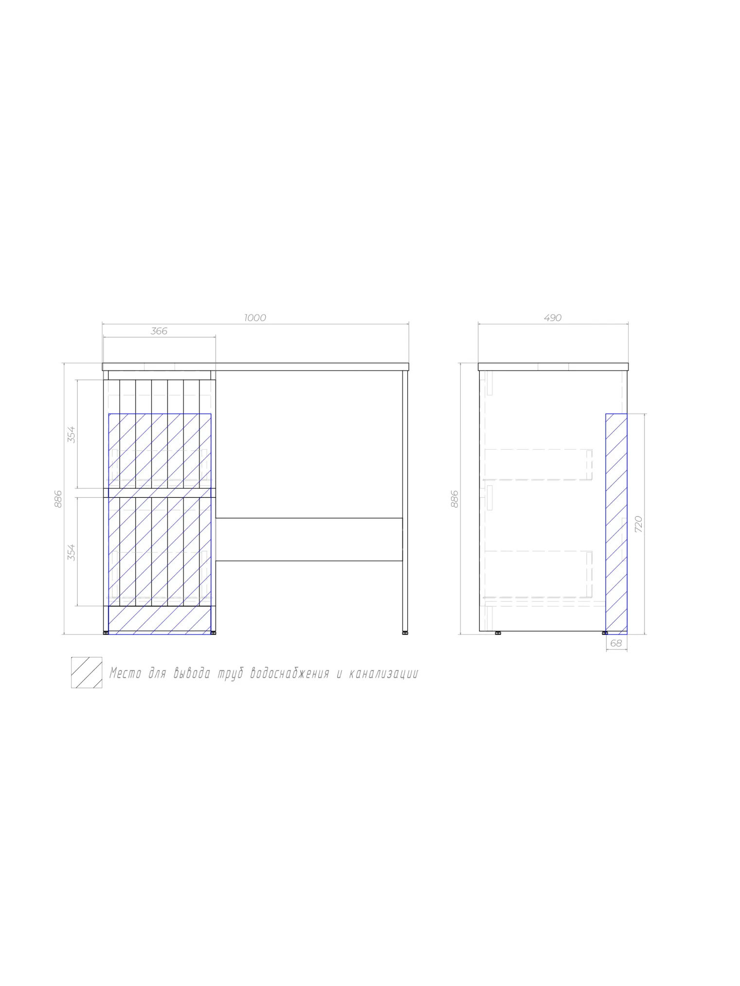 Тумба под раковину Ellio 1000-0-2 со столешницей под стиральную машину