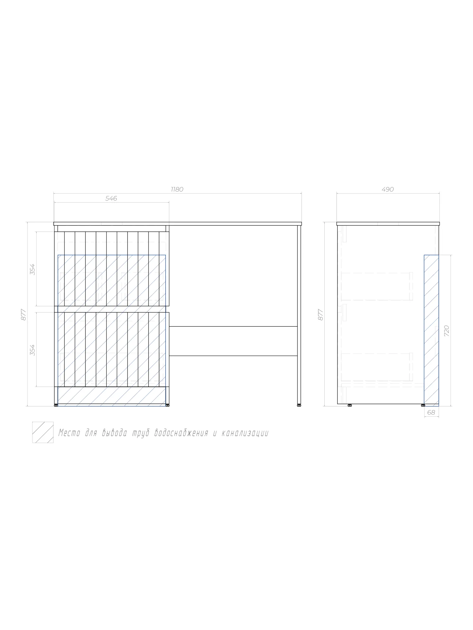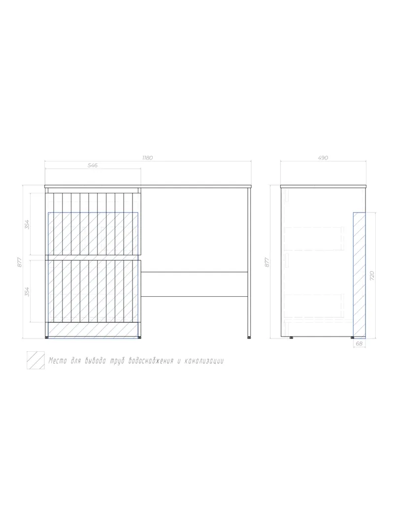 Тумба под раковину Ellio 1200-0-2 со столешницей под стиральную машину