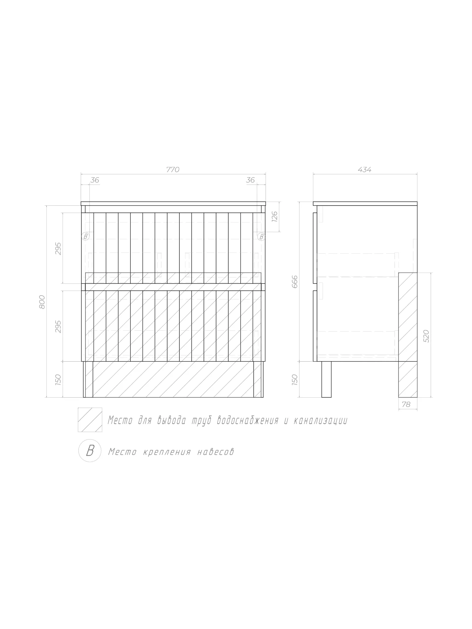 Тумба под раковину Ellio 800-0-2 со столешницей