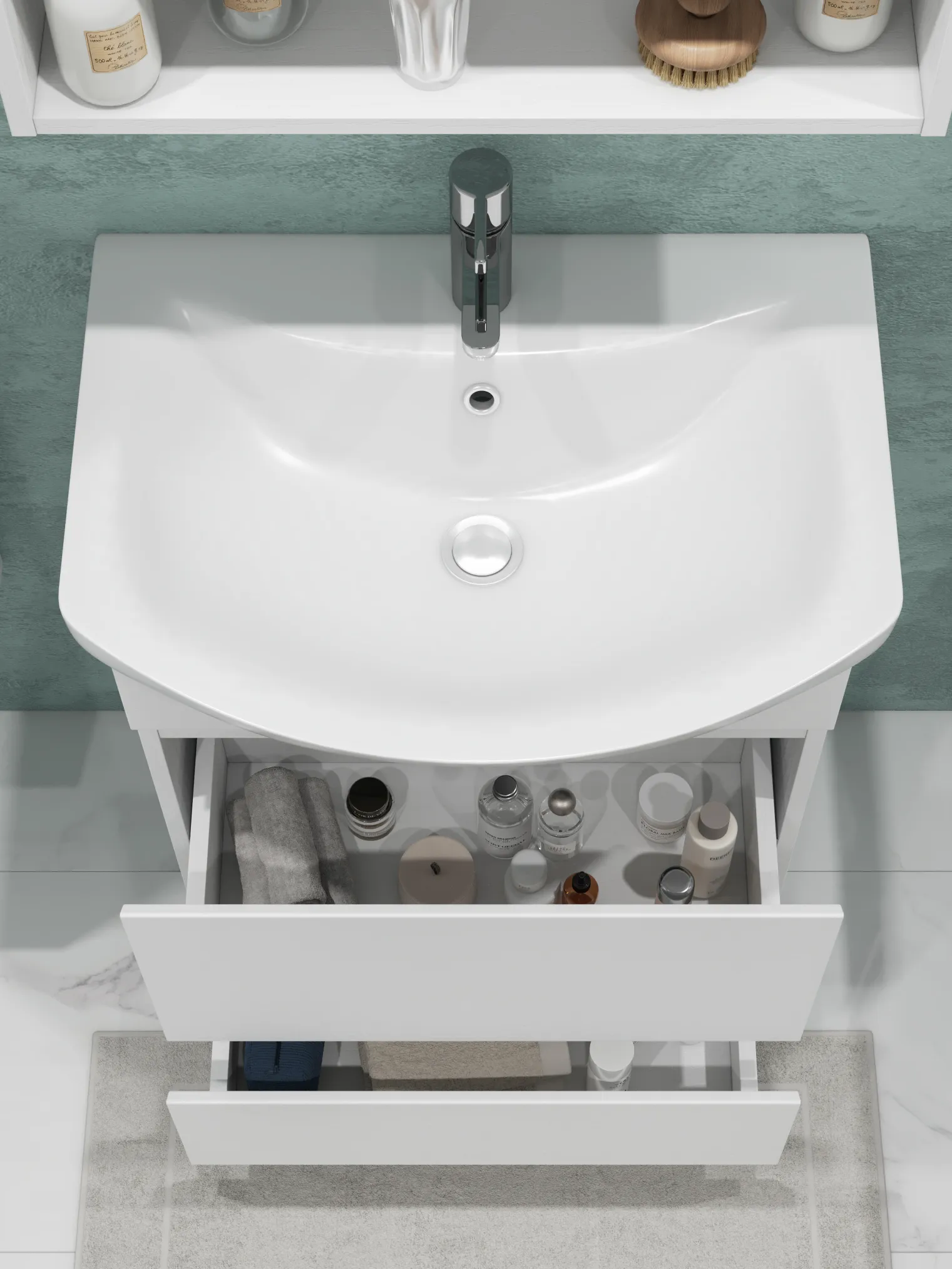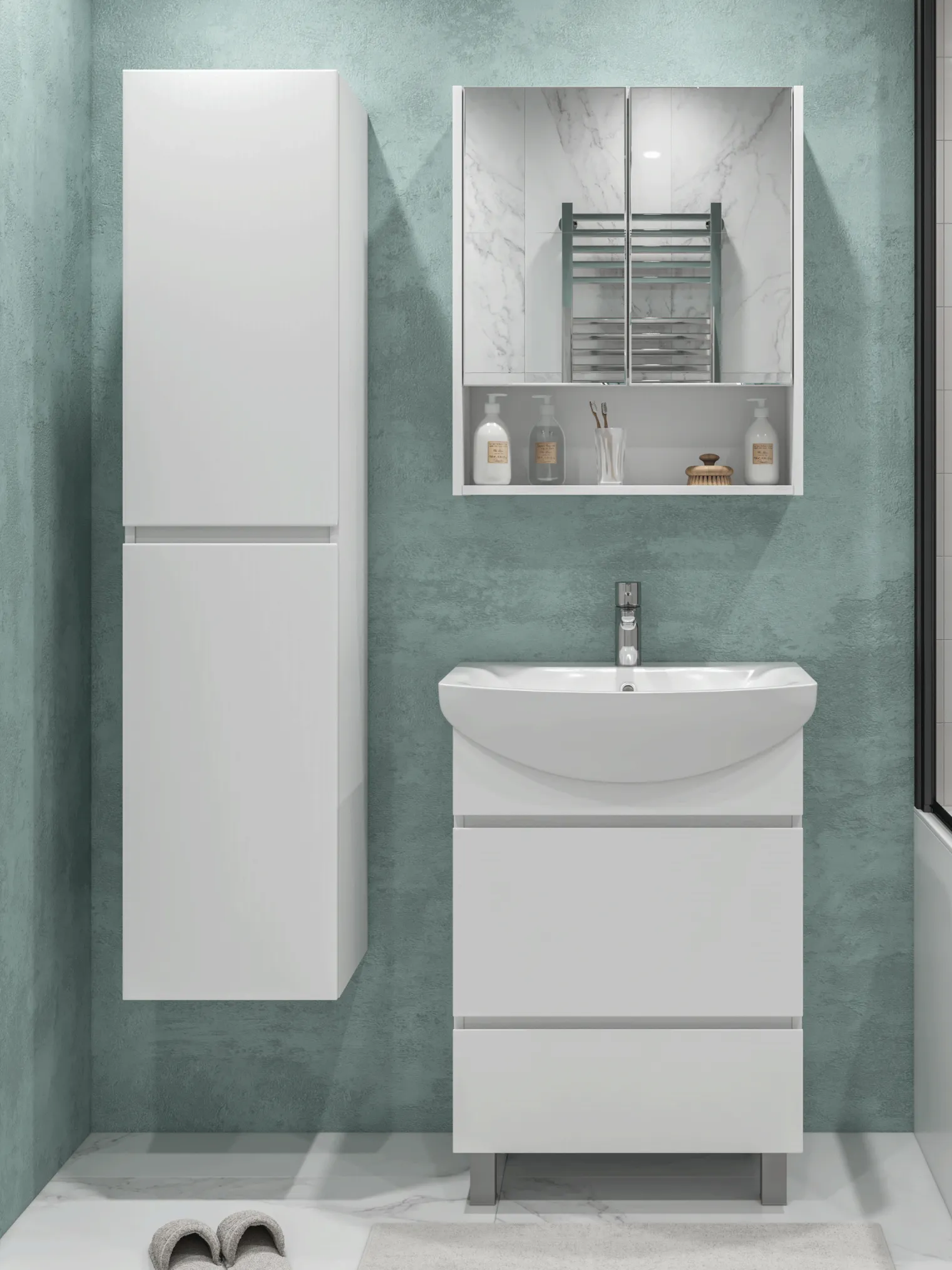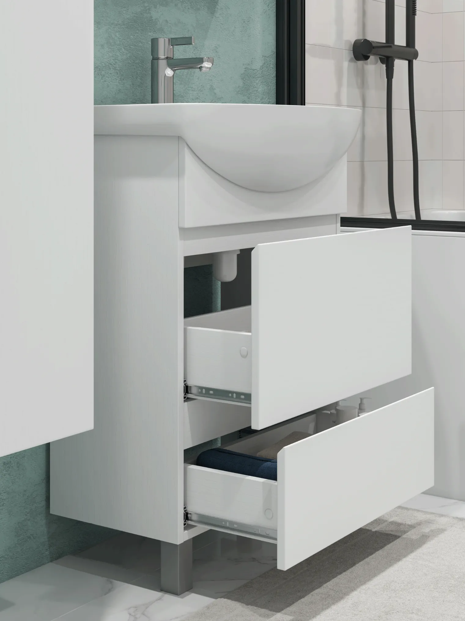 Тумба под раковину Modul 600-0-2 (Балтика) в белом цвете — это сочетание современной эстетики, компактности и практичности. При ширине 56 см модель отлично вписывается в небольшие и средние ванные комнаты, визуально освежая пространство и помогая поддерживать аккуратный интерьер. Корпус и фасады выполнены из влагостойкой ЛДСП с прочным матовым ламинированным покрытием. Универсальный белый цвет делает тумбу лёгкой и визуально воздушной, а матовая поверхность остаётся практичной — на ней менее заметны следы от капель воды и отпечатки. Тумба разработана для установки раковины Балтика 60, создавая удобную, эргономичную и визуально аккуратную зону умывальника. Напольная конструкция обеспечивает стабильность и надёжность при ежедневном использовании. Вместо дверок модель оснащена двумя выдвижными ящиками, которые позволяют удобно организовать хранение. Ящики обеспечивают быстрый доступ к содержимому и идеально подходят для размещения косметики, средств ухода, текстиля и бытовых принадлежностей. Интегрированная ручка добавляет конструкции минималистичности и подчёркивает чистые линии серии Modul. Преимущества тумбы Modul 600-0-2: универсальный белый цвет — освежает пространство и легко комбинируется с любыми материалами; компактная ширина 56 см — подходит даже для небольших ванных комнат; влагостойкая ЛДСП с матовым покрытием — устойчива к влаге и долговечна; два выдвижных ящика — удобная и быстрая организация хранения; глубокие ящики обеспечивают максимальную функциональность; интегрированная ручка — аккуратный, современный внешний вид; напольная конструкция — устойчивая и практичная. OLEVARO разрабатывает мебель, рассчитанную на интенсивную эксплуатацию и условия повышенной влажности, что особенно важно для ванных комнат. Если вам нужна компактная, светлая и современная тумба с удобными выдвижными ящиками, которая поможет поддерживать идеальный порядок, — Modul 600-0-2 станет отличным выбором.