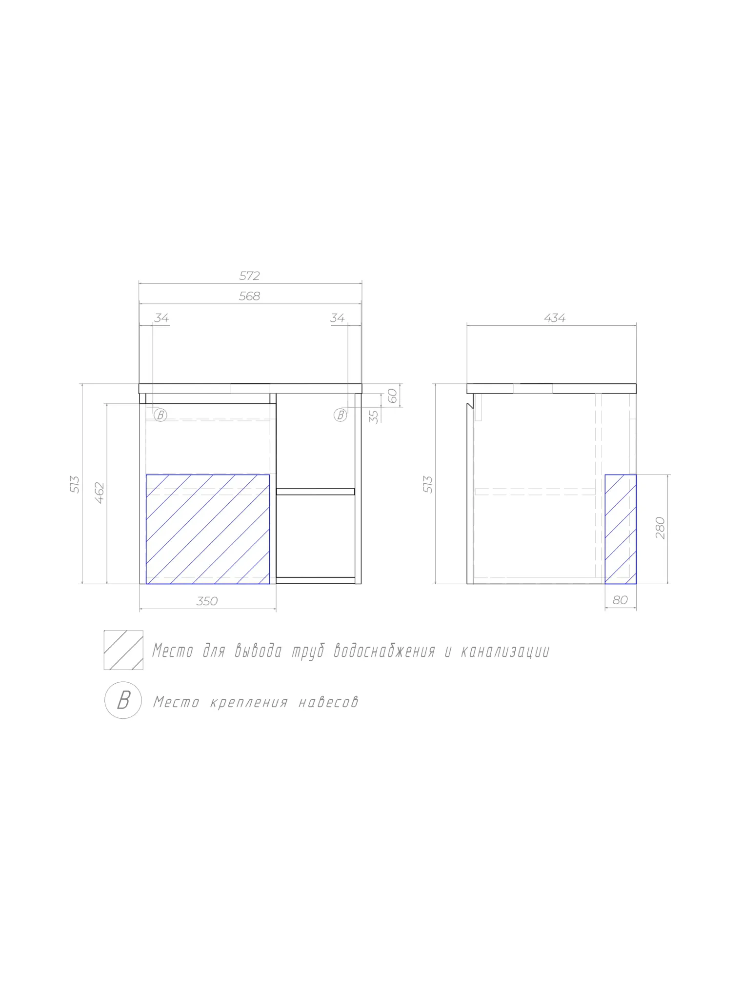 Тумба под раковину Modul 600-1-0 со столешницей навесная дуб сонома