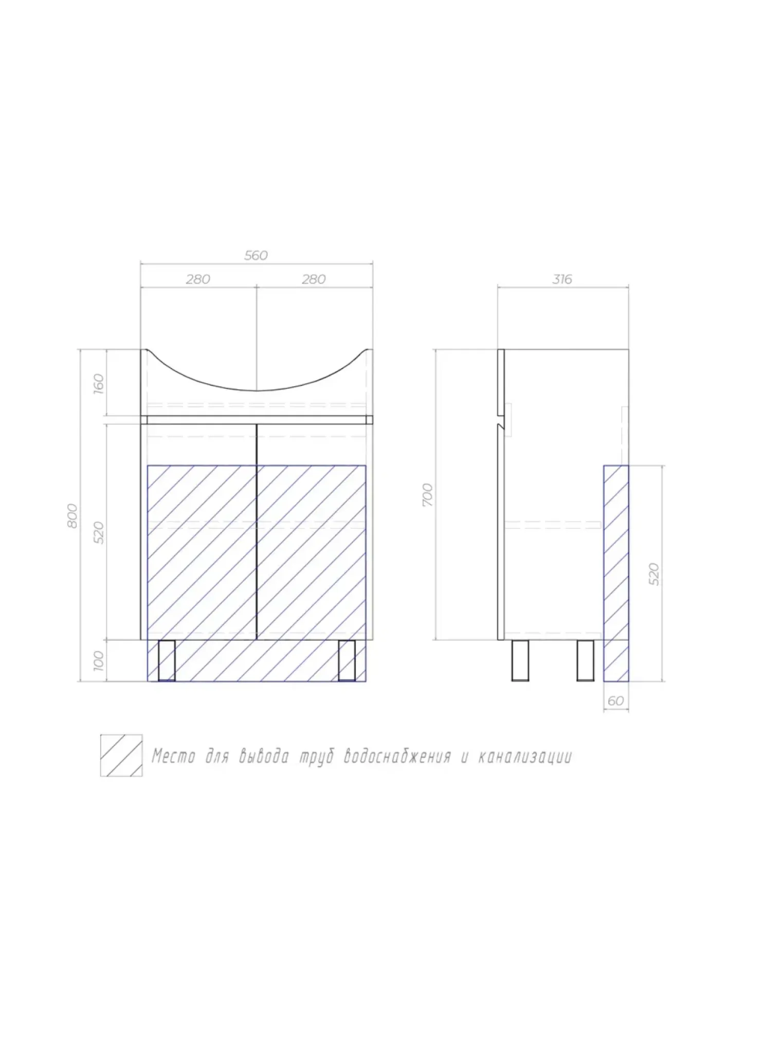 Тумба под раковину Modul 600-2-0 (Балтика) белый