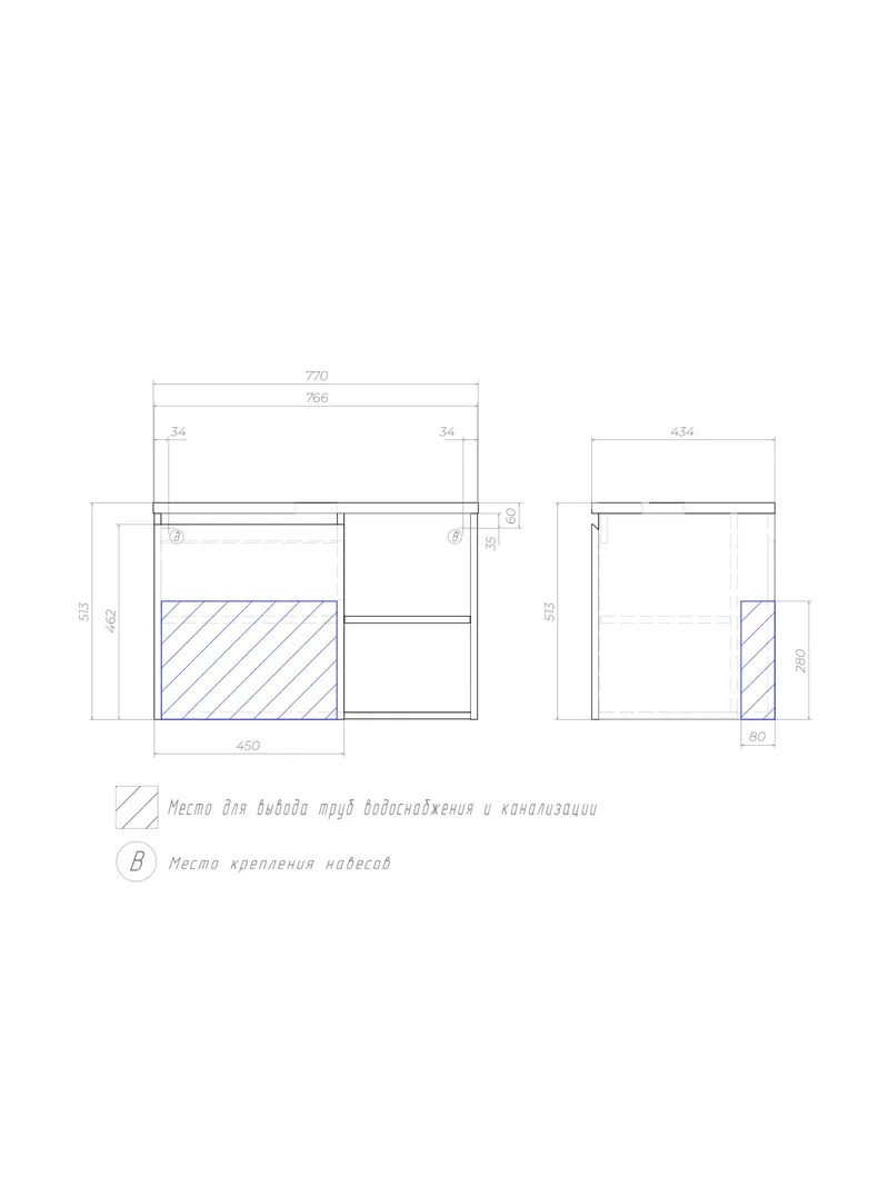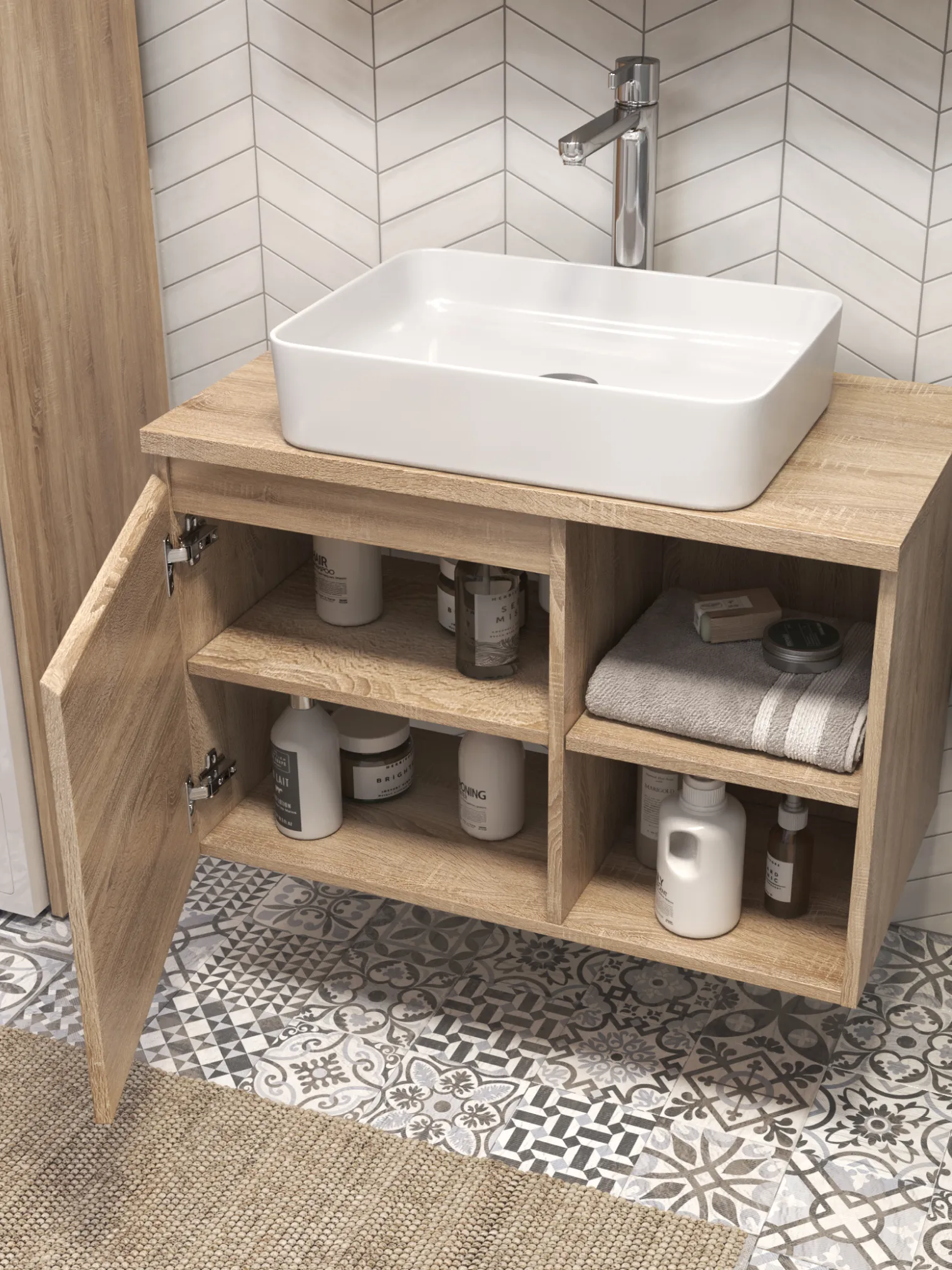 Тумба под раковину Modul 800-1-0 со столешницей навесная дуб сонома