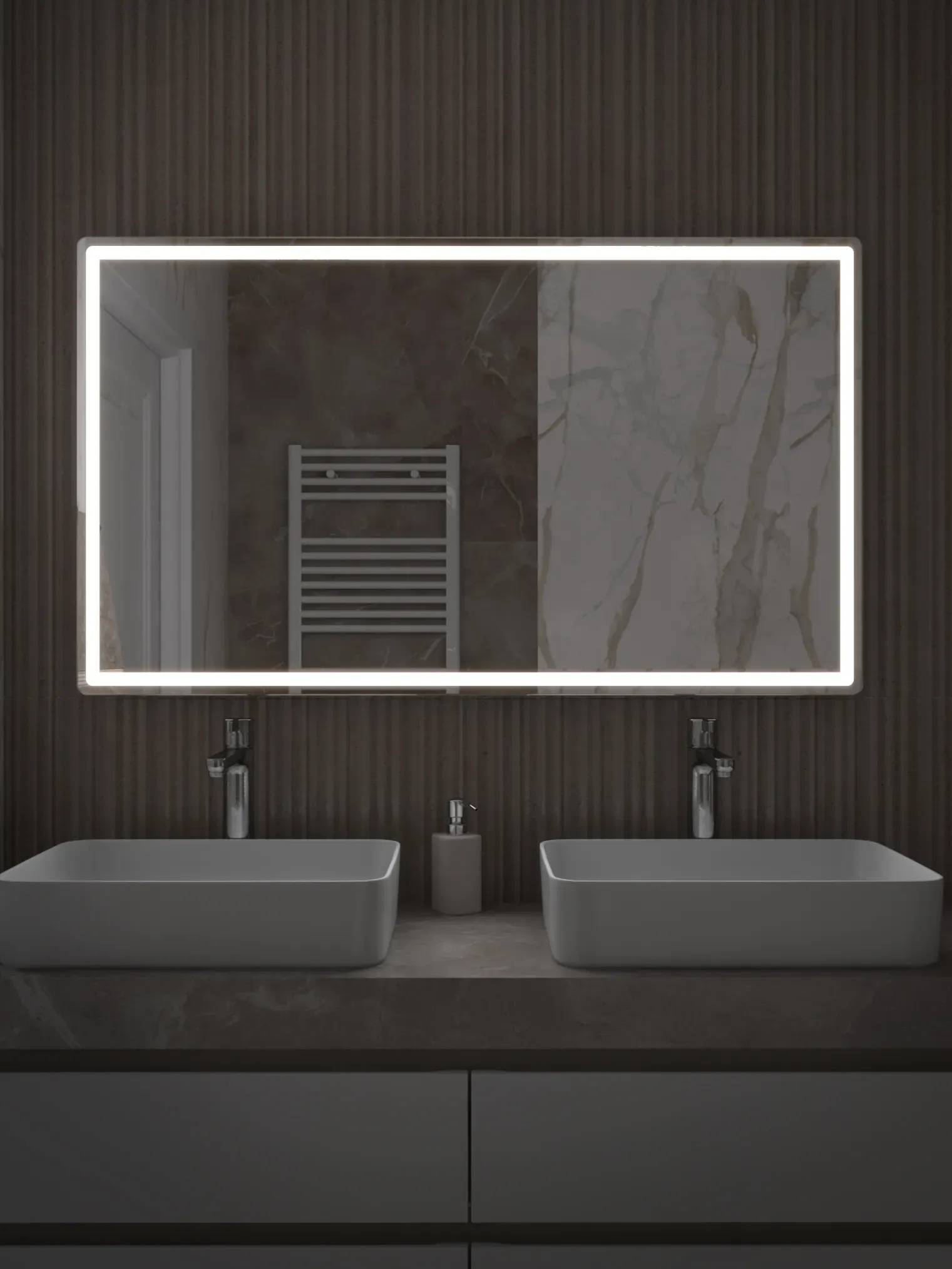 Максимальный комфорт и впечатляющий размер. Damon Comfort 1200 OLEVARO — выбор для тех, кто ценит масштаб и премиальное качество. Большое прямоугольное зеркало с COB LED-подсветкой по периметру обеспечивает идеальное освещение всей зоны умывальника. Свет нейтрального спектра (5000К) делает отражение естественным, без искажений. Функция антизапотевания с автоматическим включением сохраняет зеркальную поверхность чистой и прозрачной даже после горячего душа. Бесконтактное управление делает использование максимально удобным — просто взмахните рукой, чтобы включить или выключить подсветку. Damon Comfort 1200 — зеркало, которое превращает ежедневный уход в удовольствие.