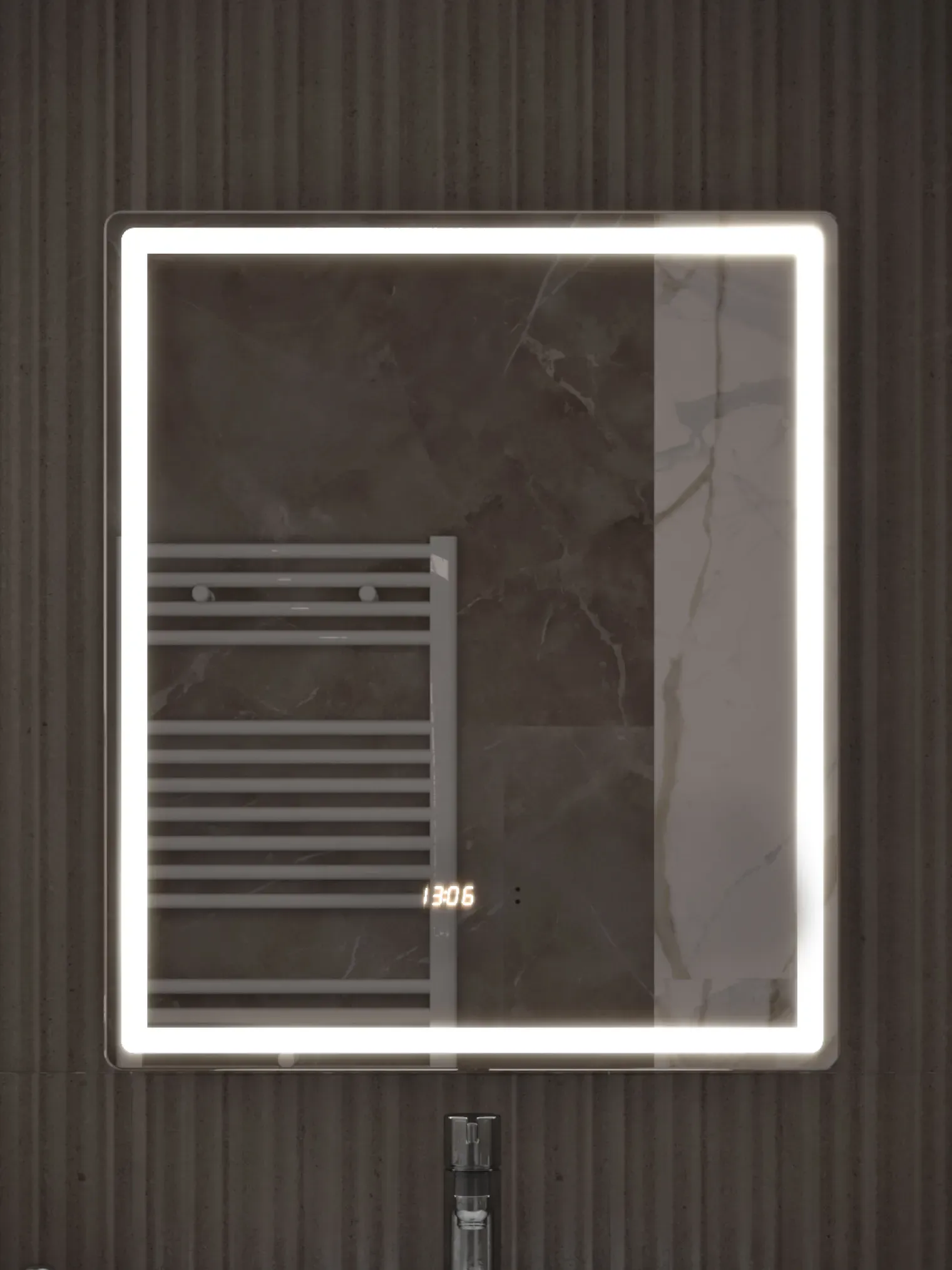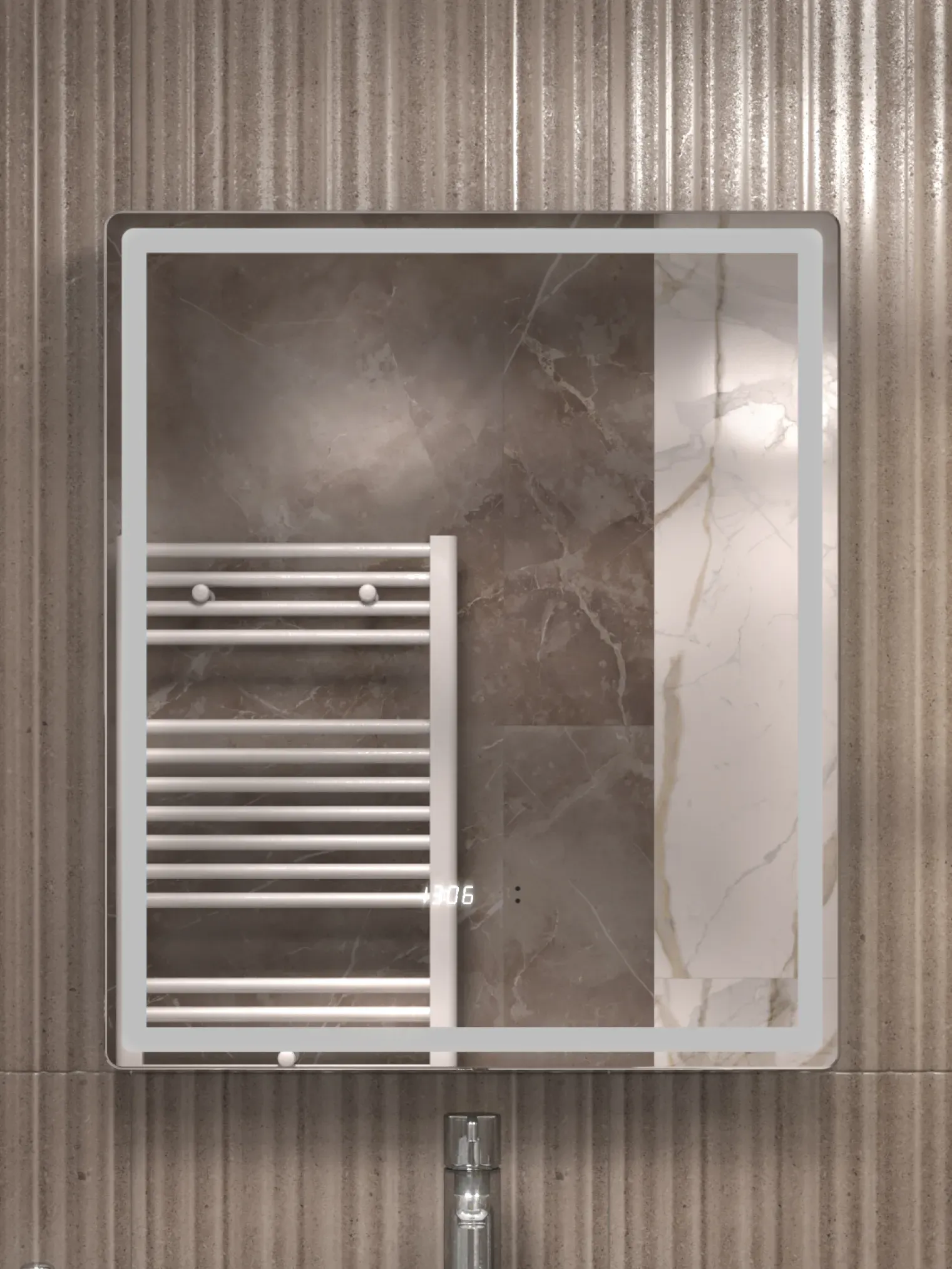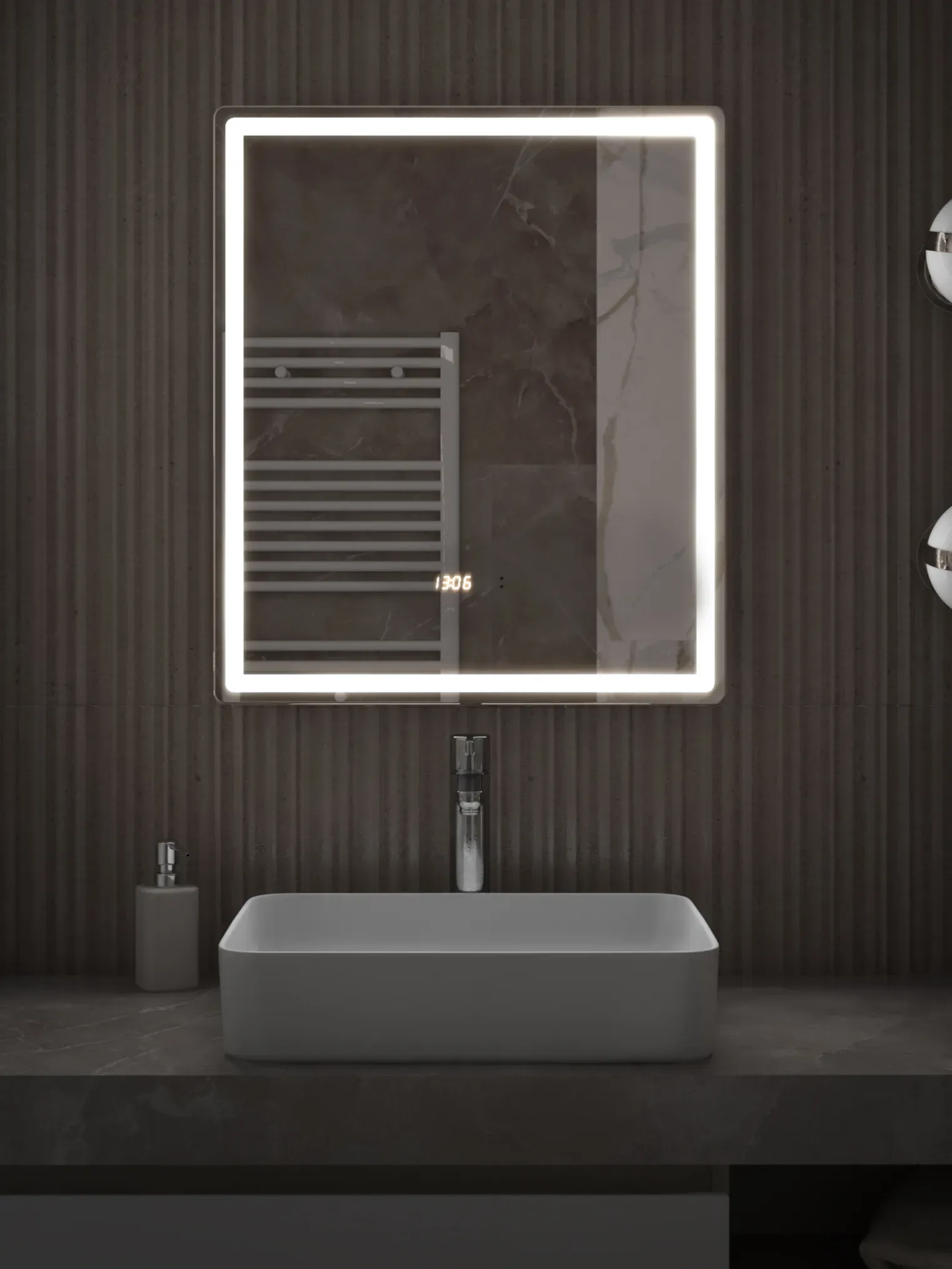 - Фронтальная LED-подсветка нового поколения (COB) обеспечивает мягкое, равномерное освещение без точек и бликов — идеально для ухода за собой и создания уютной атмосферы в ванной.