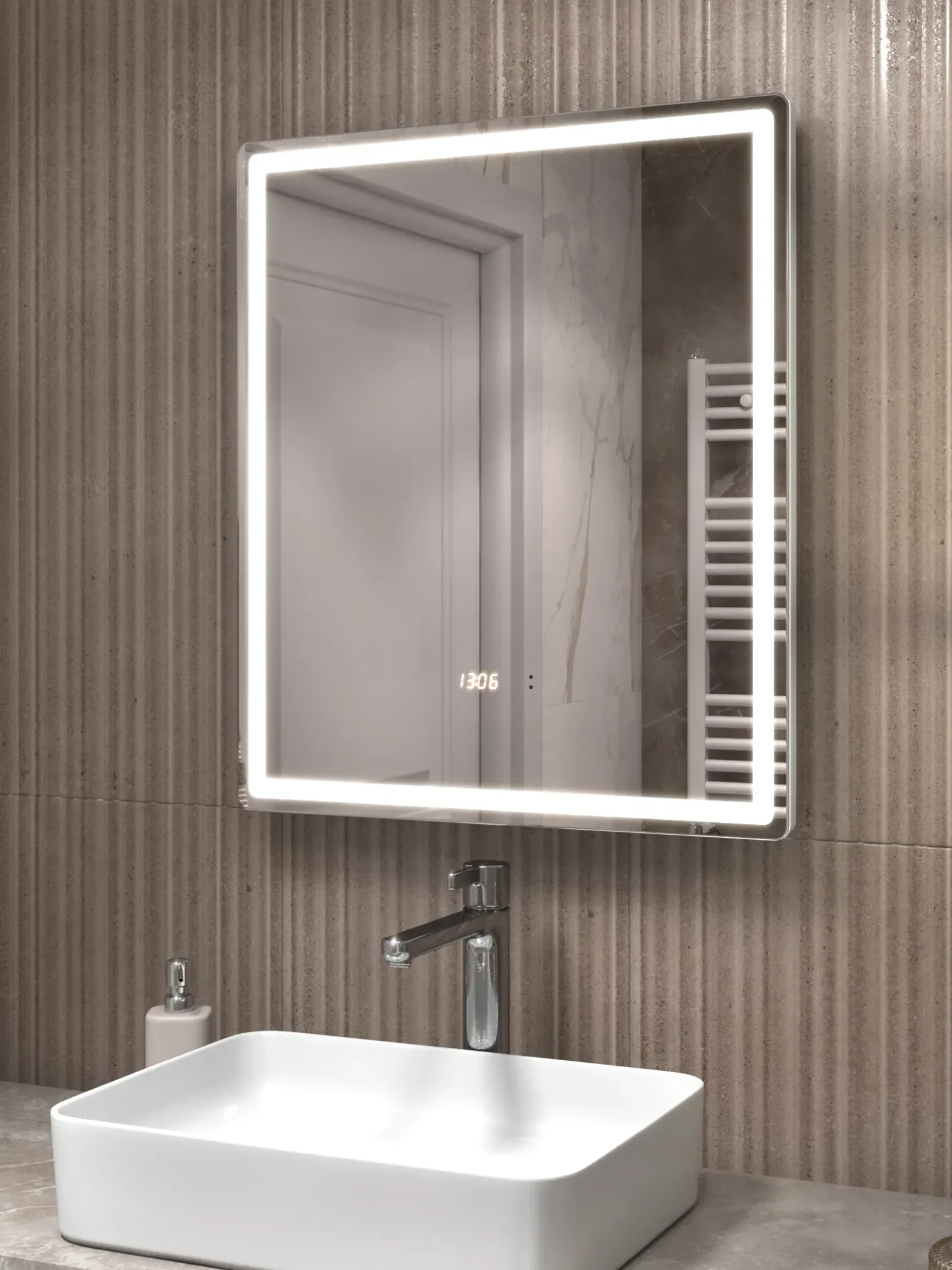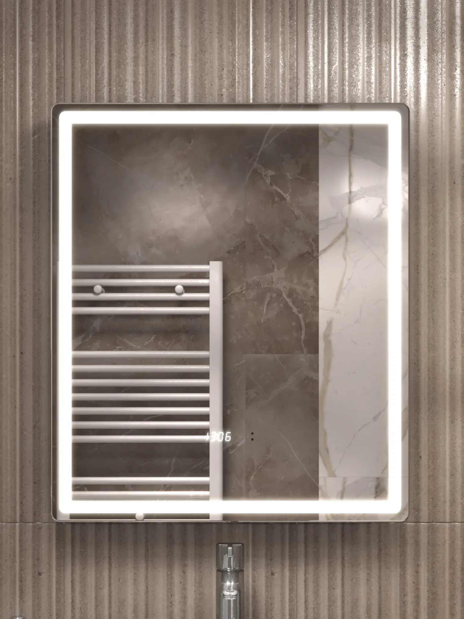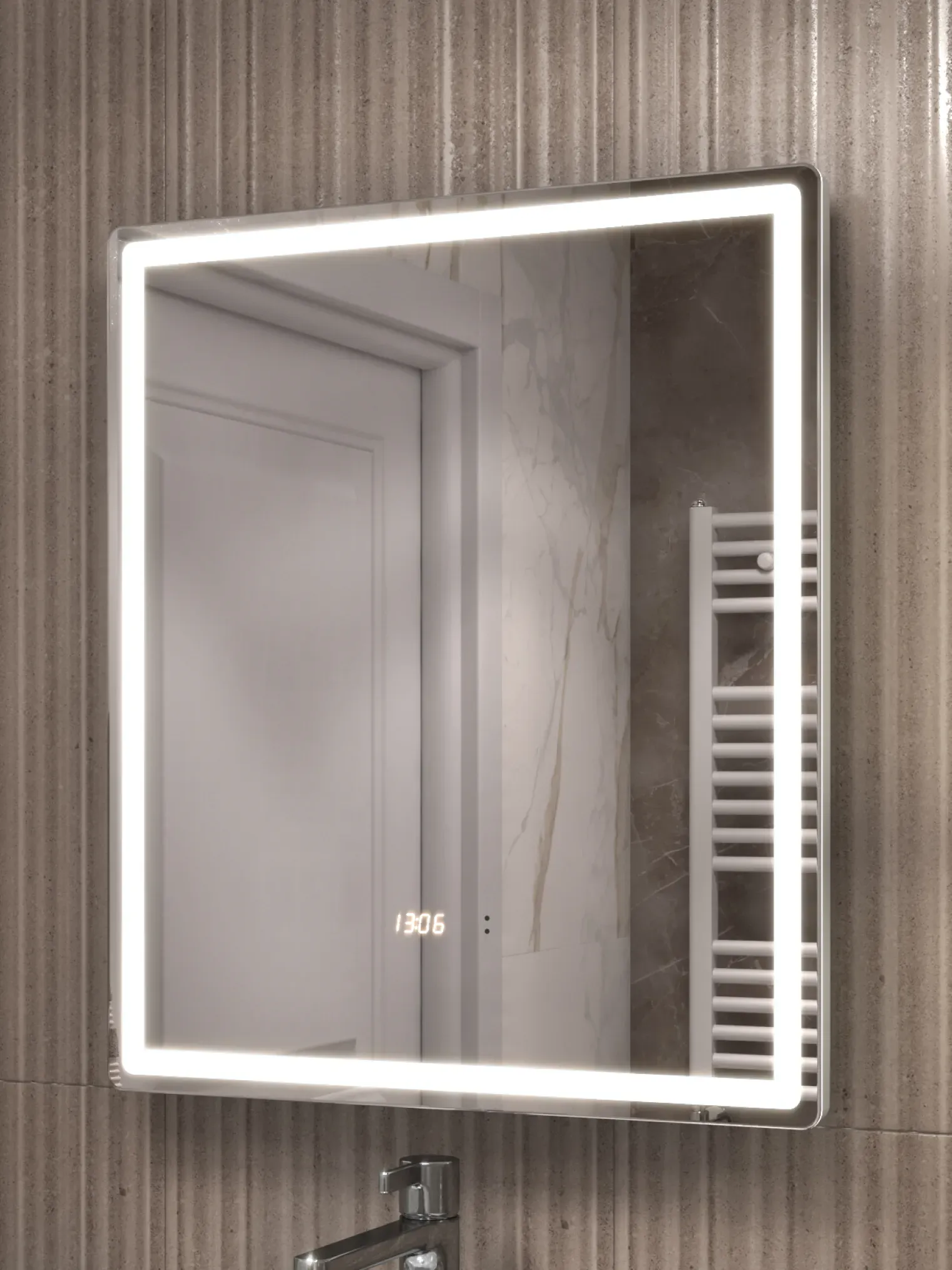 - Фронтальная LED-подсветка нового поколения (COB) обеспечивает мягкое, равномерное освещение без точек и бликов — идеально для ухода за собой и создания уютной атмосферы в ванной.