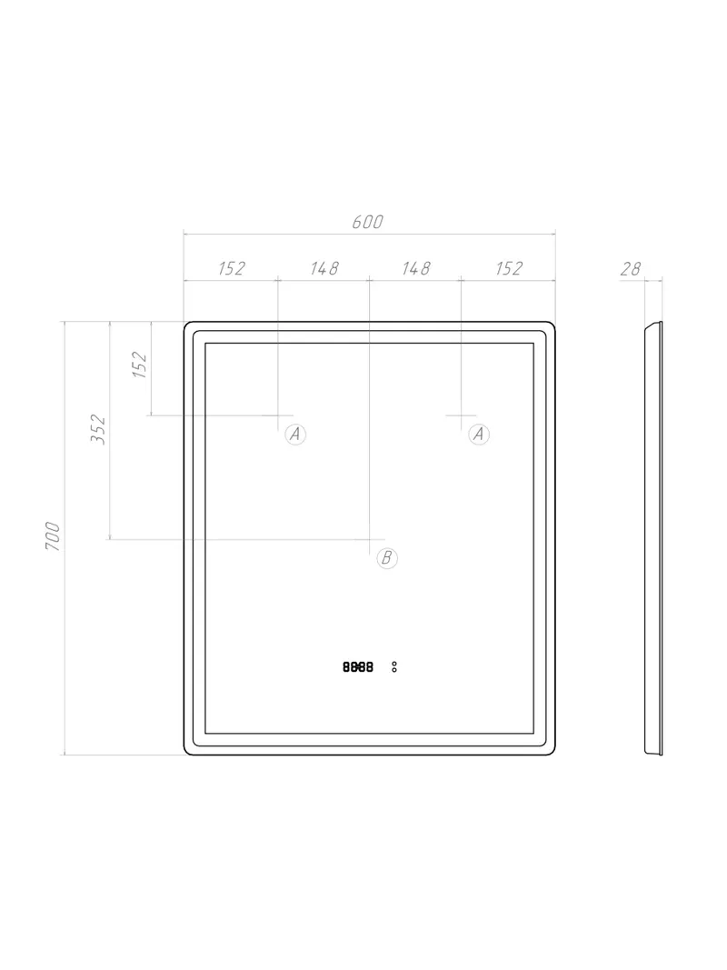 Зеркало для ванной OLEVARO Damon Luxe 600 с LED-подсветкой, прямоугольное