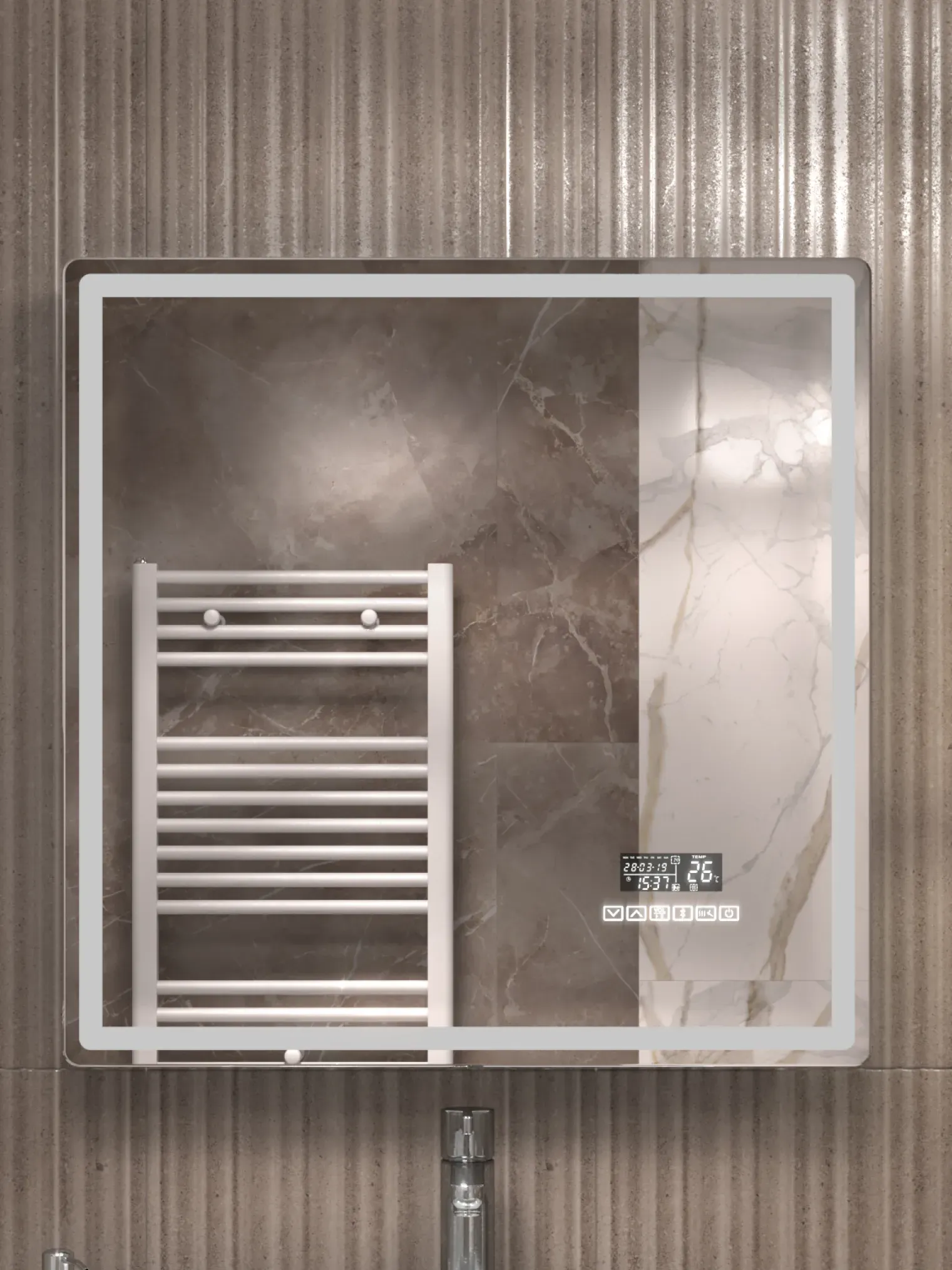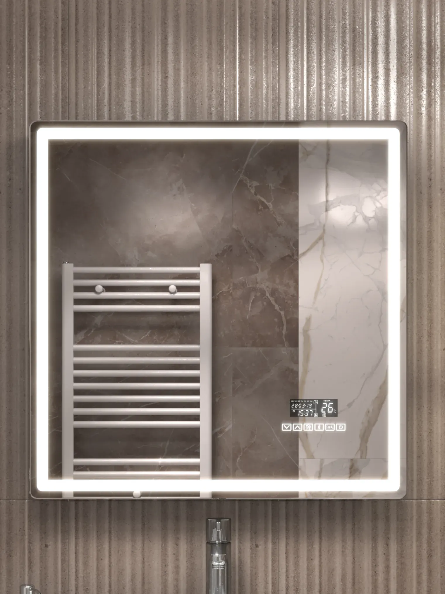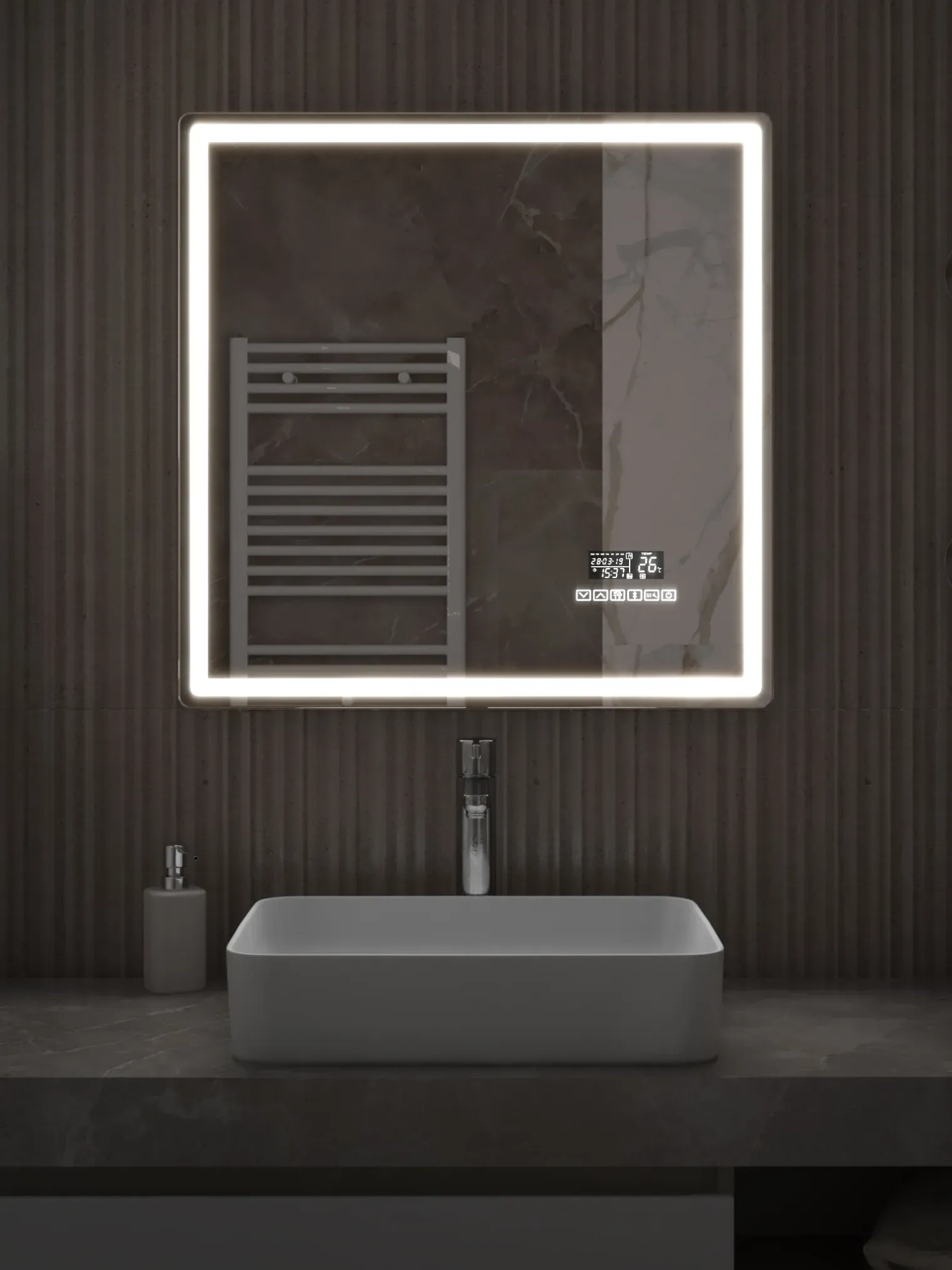 Современная геометрия и полный контроль голосом. Квадратная модель Damon Media Voice 700 OLEVARO — это больше, чем зеркало. Это интеллектуальная мультимедийная система с голосовым управлением, Bluetooth-аудио, часами, датчиком температуры и антизапотеванием. Слушайте любимую музыку, узнавайте время и управляйте подсветкой без прикосновений. Стереодинамики SONY обеспечивают чистый и мощный звук, наполняя помещение приятной акустикой. COB LED-подсветка по периметру создаёт мягкий, равномерный свет без точек и теней, а дефоггер 30×40 см сохраняет зеркало кристально прозрачным после душа. Damon Media Voice 700 — зеркало, которое объединяет технологии и эстетику в идеальном балансе.