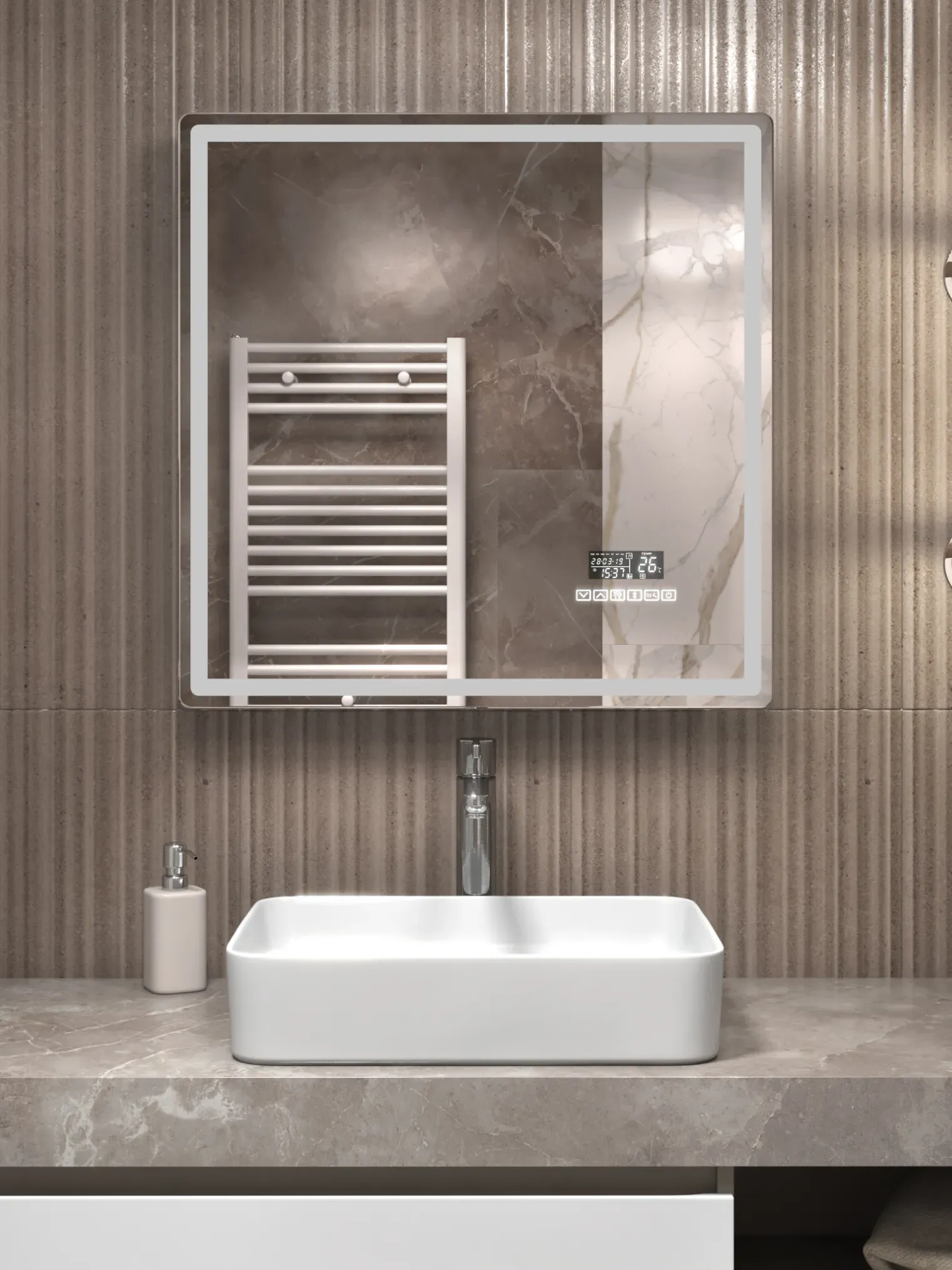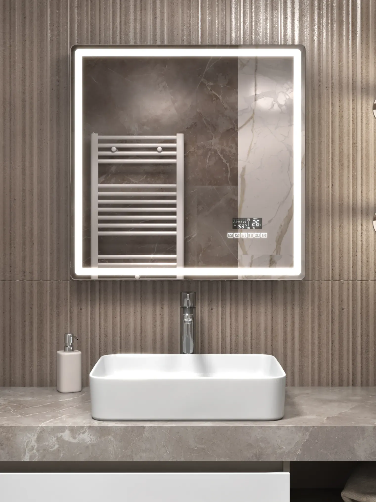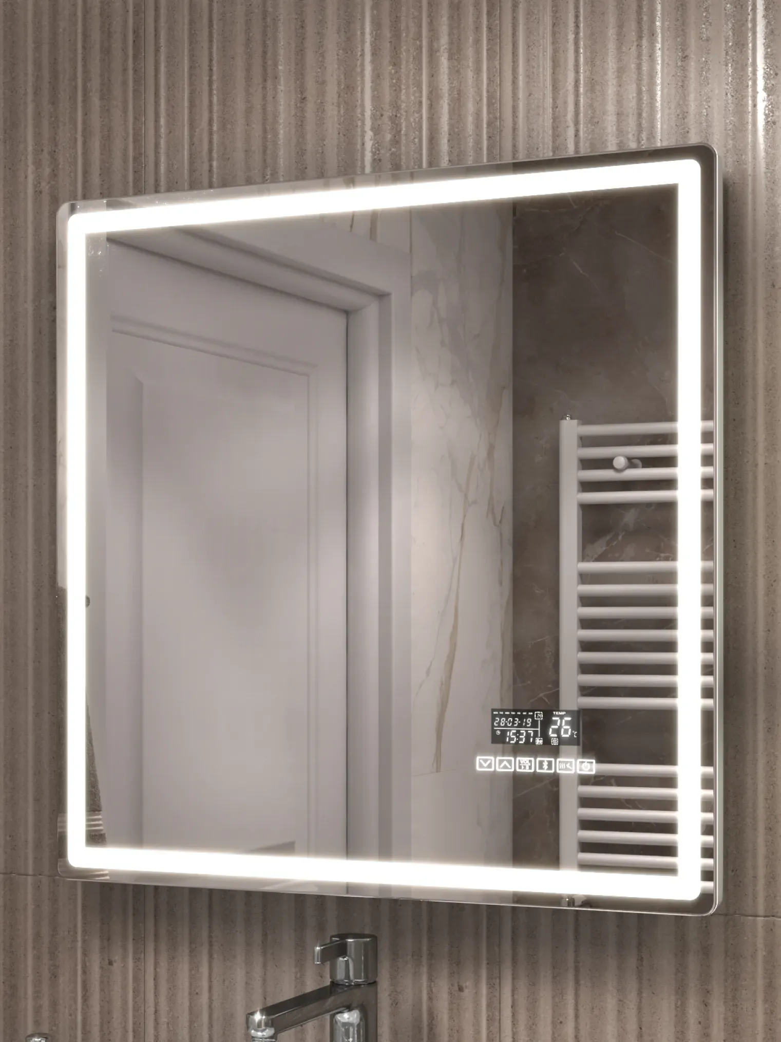 Современная геометрия и полный контроль голосом. Квадратная модель Damon Media Voice 700 OLEVARO — это больше, чем зеркало. Это интеллектуальная мультимедийная система с голосовым управлением, Bluetooth-аудио, часами, датчиком температуры и антизапотеванием. Слушайте любимую музыку, узнавайте время и управляйте подсветкой без прикосновений. Стереодинамики SONY обеспечивают чистый и мощный звук, наполняя помещение приятной акустикой. COB LED-подсветка по периметру создаёт мягкий, равномерный свет без точек и теней, а дефоггер 30×40 см сохраняет зеркало кристально прозрачным после душа. Damon Media Voice 700 — зеркало, которое объединяет технологии и эстетику в идеальном балансе.