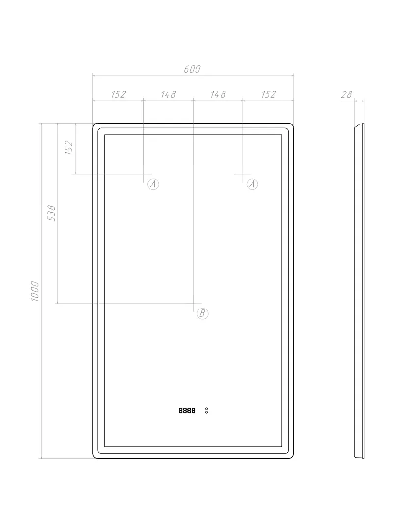 - Опции зеркалаБесконтактное управление (на взмах), светодиодная подсветка, встроенные часы, датчик температуры, функция антизапотевания, диммер