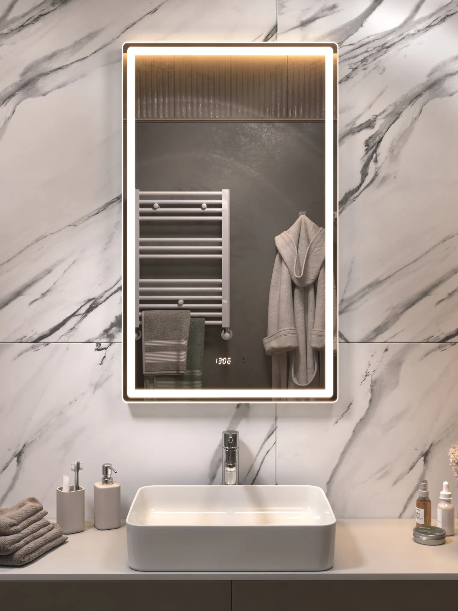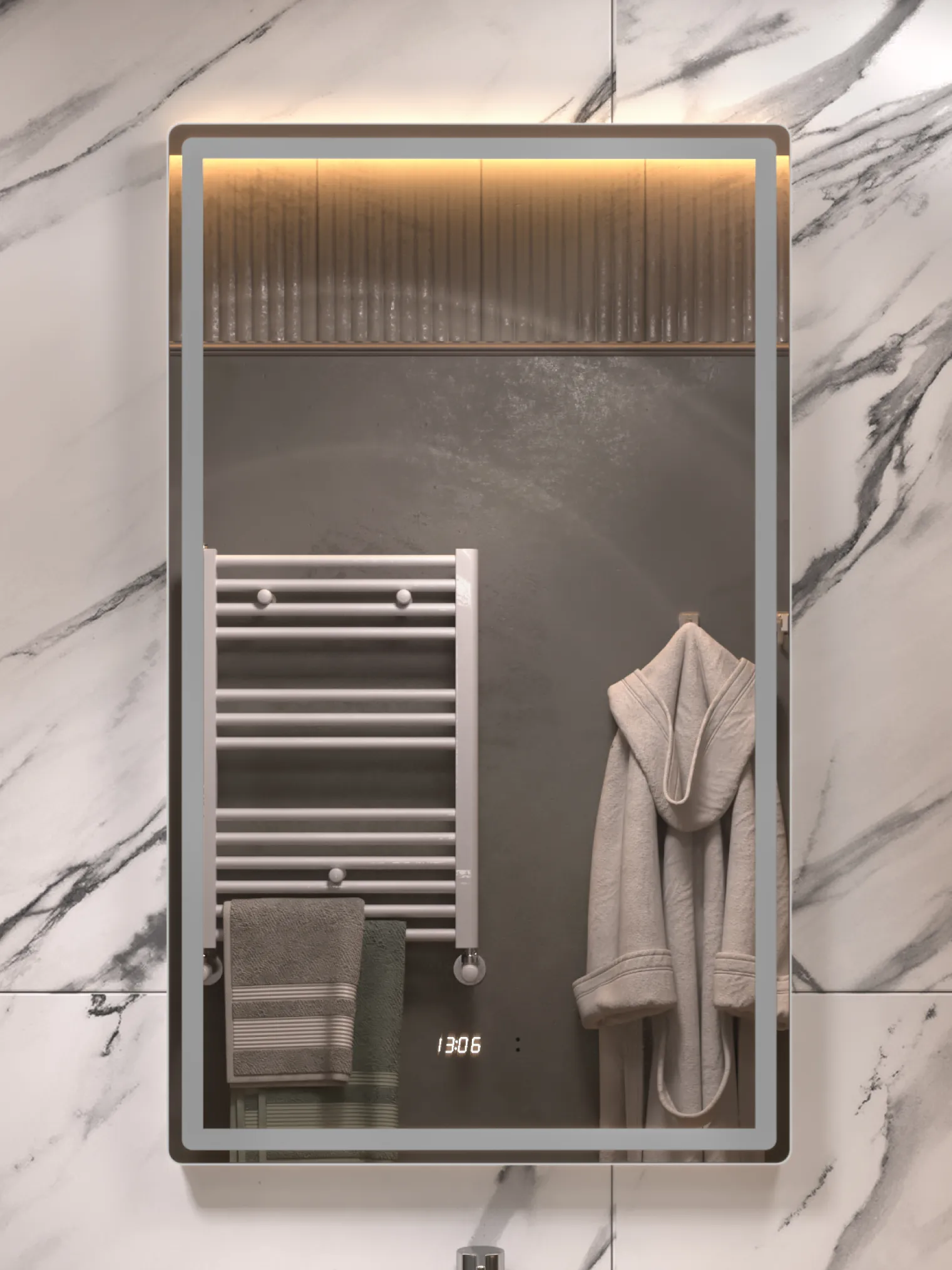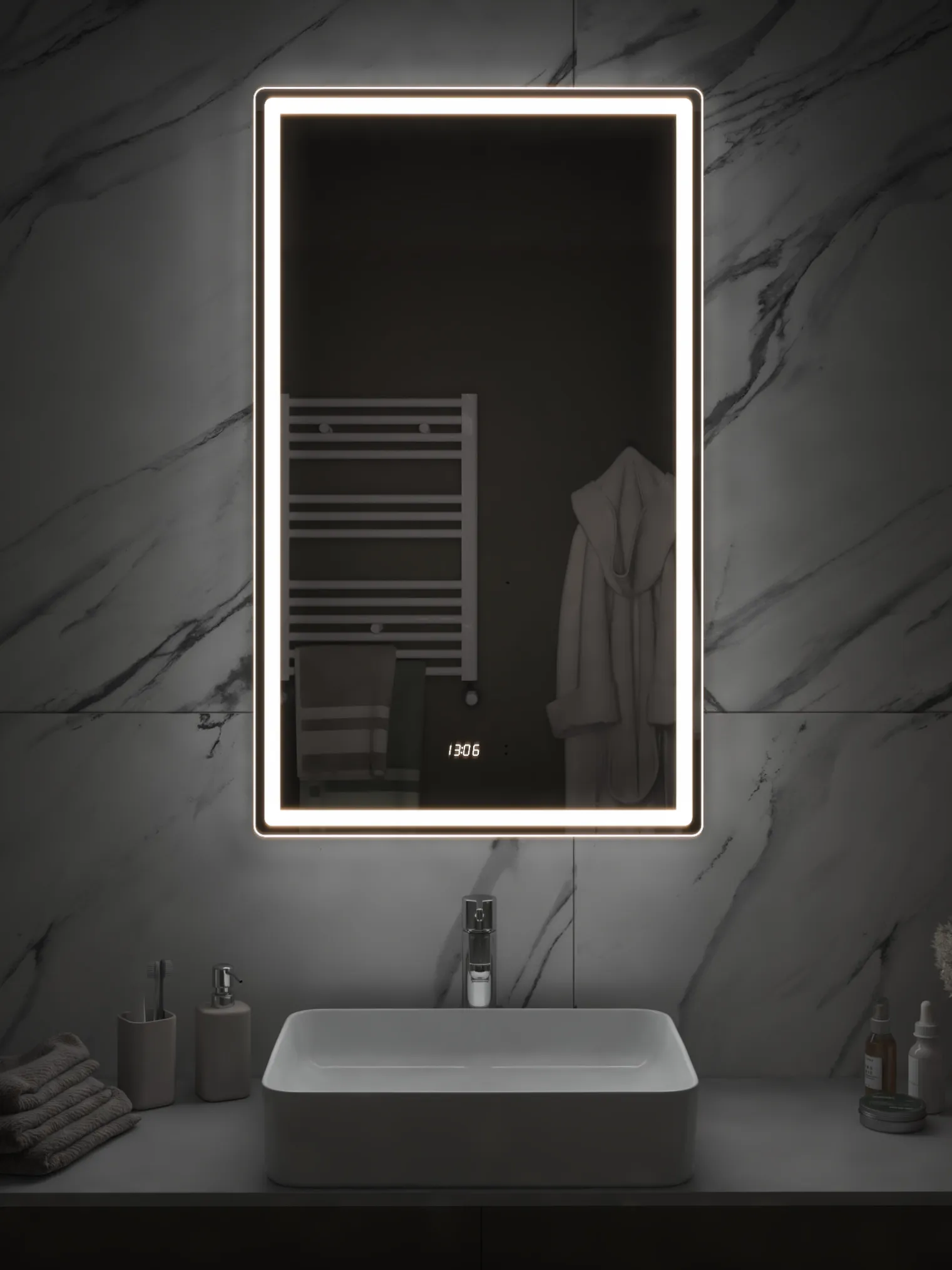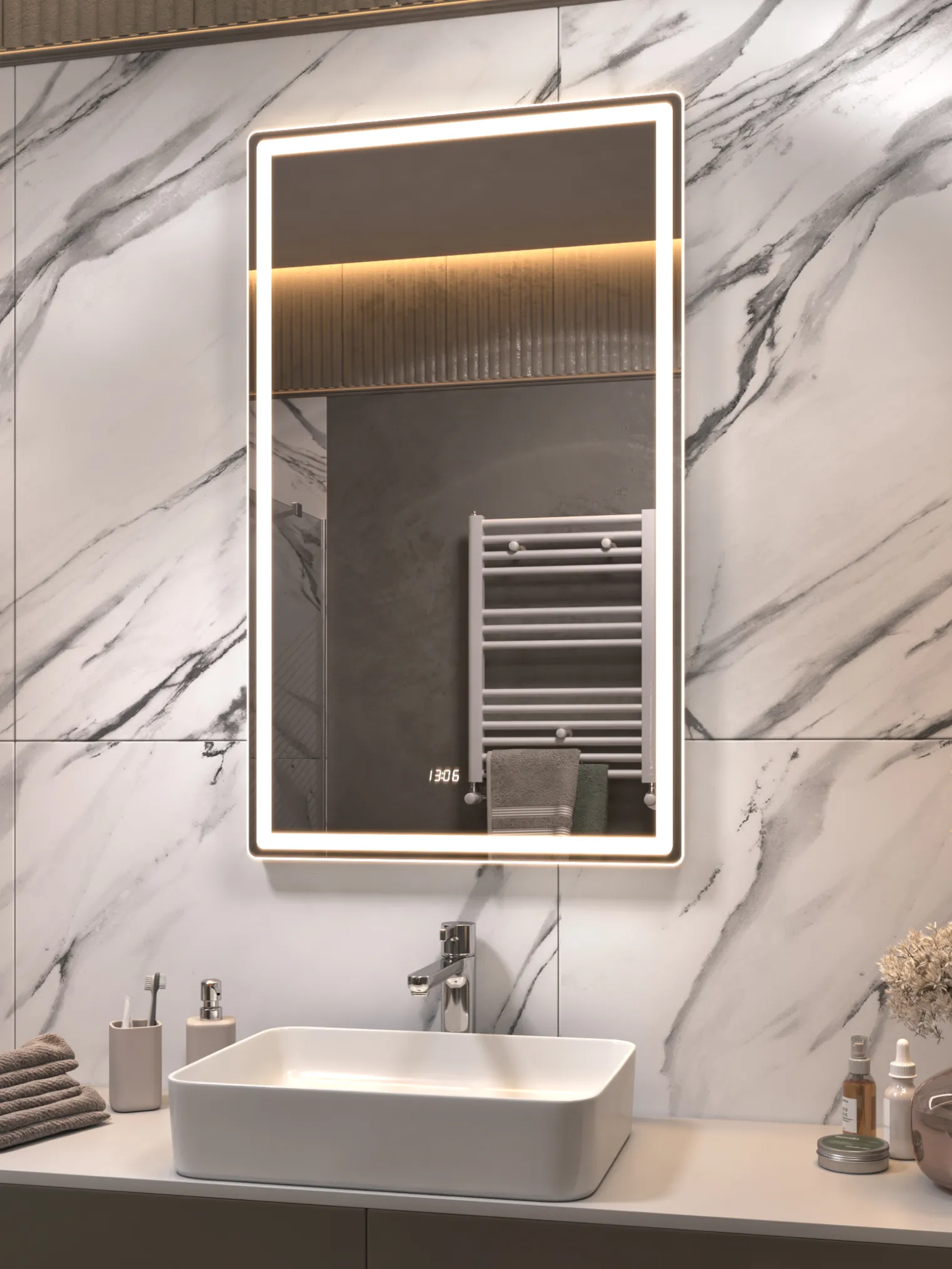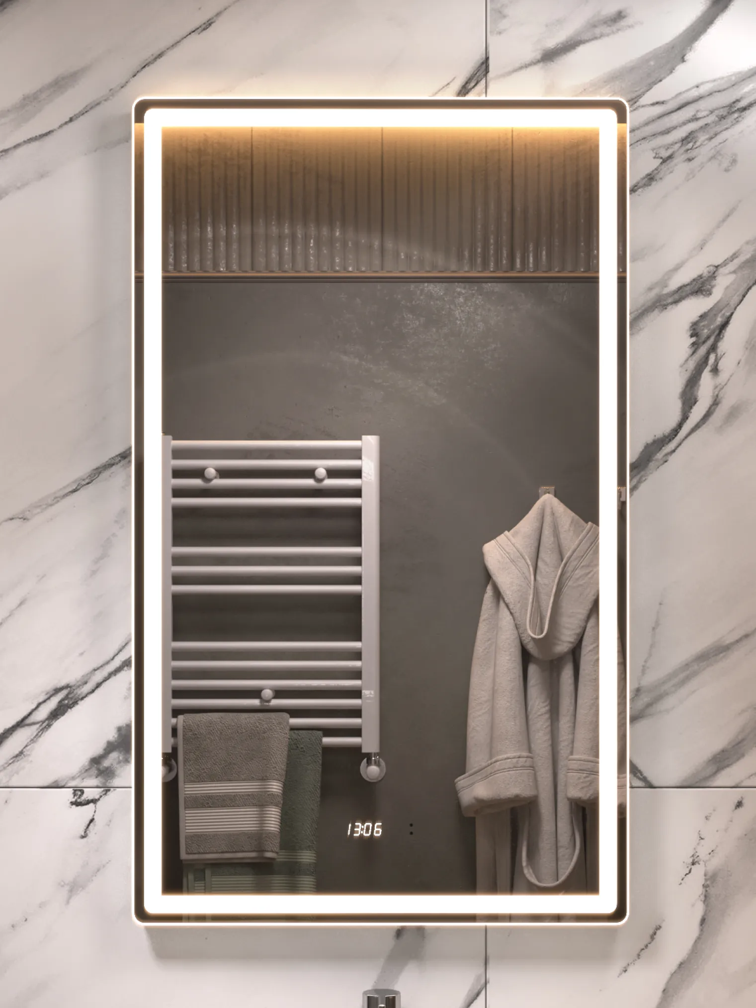 Стиль, технологии и комфорт в одном зеркале. Модель Ellio Luxe 600 OLEVARO создана для тех, кто ценит эстетику и функциональность. Фронтальная COB LED-подсветка формирует мягкий и равномерный свет без бликов и точек, идеально подходящий для ухода за собой и макияжа. Бесконтактное управление позволяет включать подсветку простым взмахом руки, а встроенные часы и датчик температуры делают зеркало ещё удобнее в повседневном использовании. Функция антизапотевания (дефоггер 30×40 см) обеспечивает кристально чистую поверхность даже после горячего душа. Диммерная регулировка яркости помогает создать нужную атмосферу — от мягкого приглушённого света до яркого рабочего освещения. Ellio Luxe 600 — зеркало, в котором технологии работают на ваш комфорт.