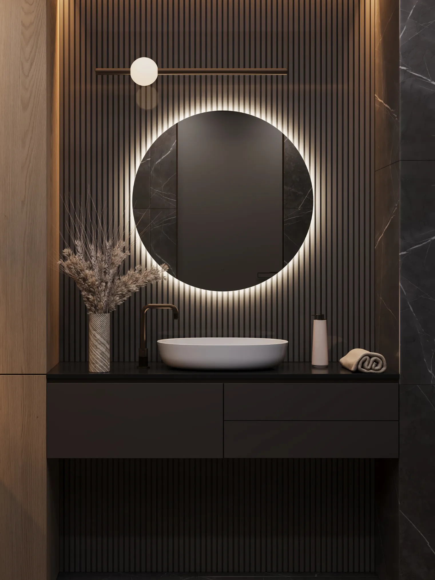 Эстетика света и плавных линий. Модель Paola Classic 900 OLEVARO создана для тех, кто любит современный стиль с элементами уюта. Внешняя подсветка по периметру формирует мягкое ореольное свечение и создаёт ощущение лёгкости в интерьере. Инфракрасный датчик позволяет включать подсветку движением руки, сохраняя поверхность зеркала идеально чистой. Свет 5000К комфортен для глаз и подходит для повседневного ухода. Paola Classic 900 — зеркало, которое делает пространство уютным и сбалансированным.