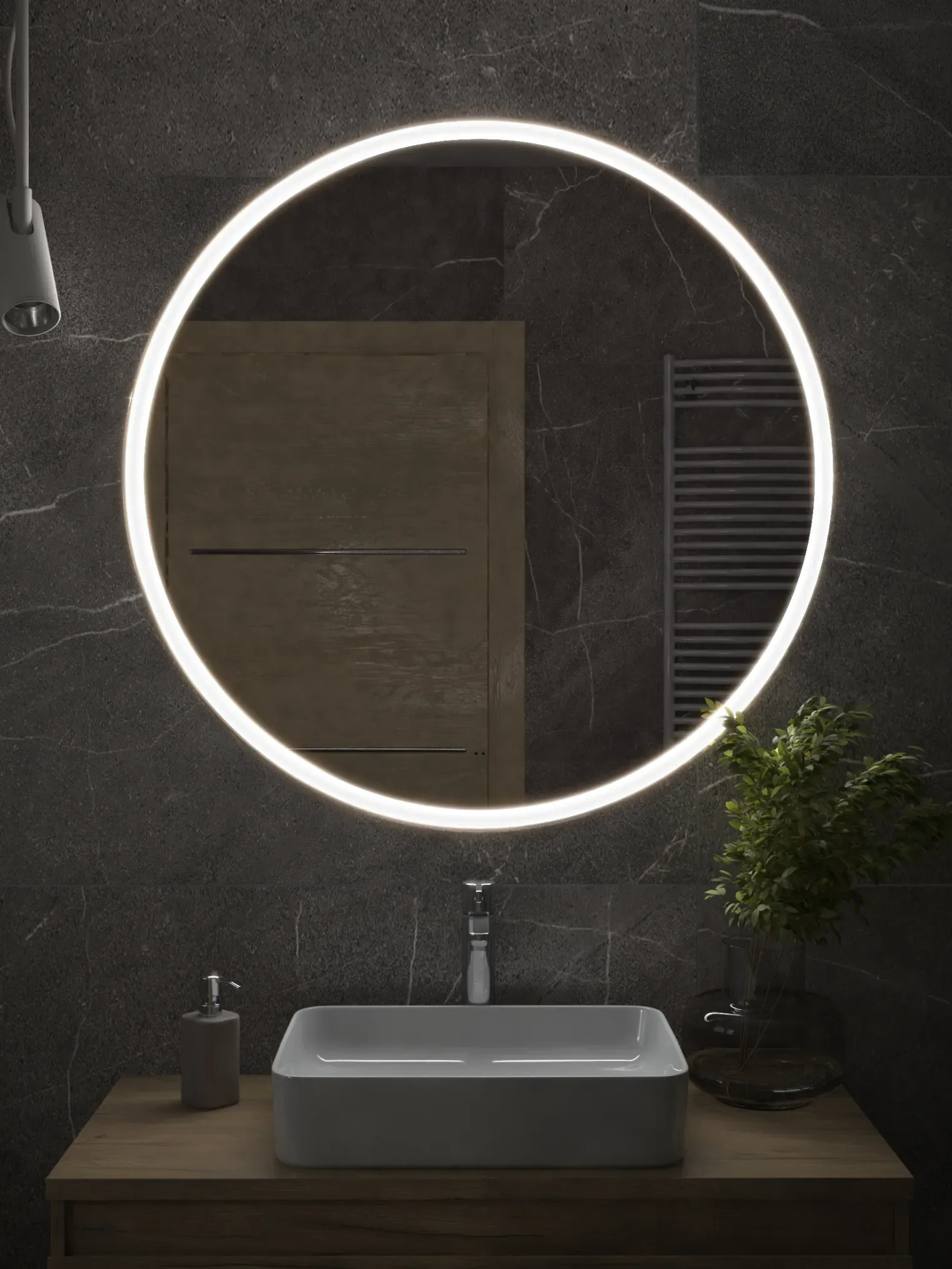 Современный акцент и комфорт в каждой детали. Vizo Comfort 1000 OLEVARO — крупное зеркало, которое становится центром внимания в интерьере. Фронтальная подсветка COB-типа даёт ровный мягкий свет, подчёркивая форму и визуально увеличивая пространство. Функция антизапотевания (дефоггер 30×40 см) сохраняет зеркало прозрачным даже при высокой влажности. Бесконтактное включение обеспечивает удобство и чистоту — достаточно взмахнуть рукой, чтобы активировать свет. Vizo Comfort 1000 — зеркало, которое объединяет свет, эстетику и современные технологии.